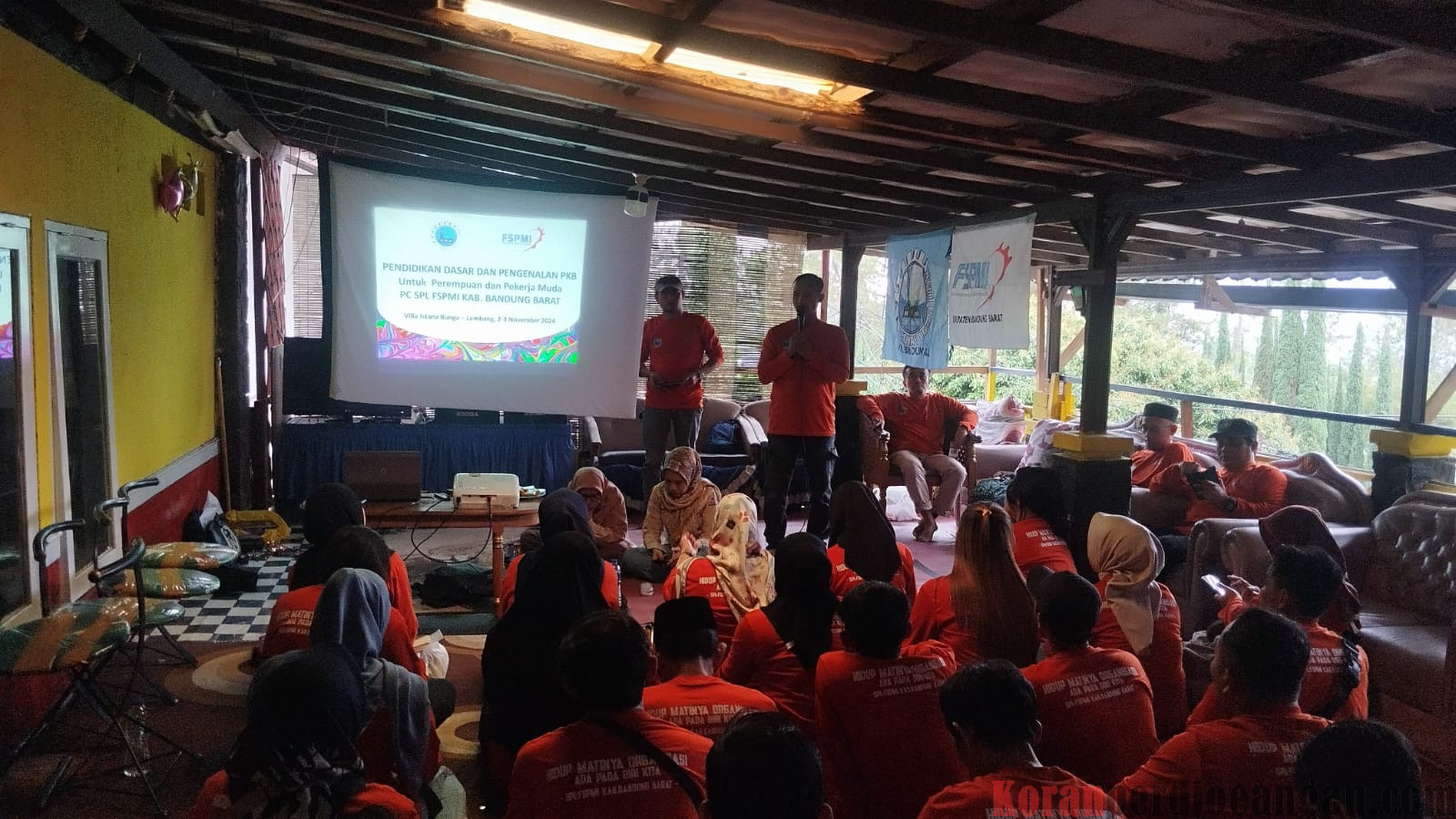 Bandung Barat, KPonlie – Bertempat di Villa Istana Bunga Lembang Pimpinan Cabang SPL FSPMI Kabupaten Bandung Barat menyelenggarakan Pendidikan dasar dan pengenalan PKB untuk Pekerja Perempuan & Pekerja Muda.