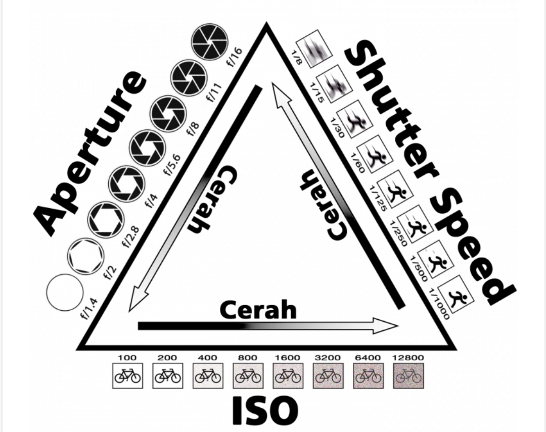 Point dari pengaturan segitiga exposure adalah, menyeimbangkan intensitas cahaya yang masuk ke dalam kamera dengan 3 metode berbeda.
