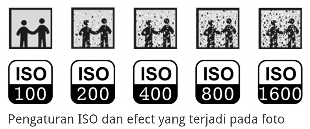 ISO adalah mengatur tingkat sensifitas sensor kamera terhadap cahaya. Semakin rendah nilai ISO maka hasil foto akan semakin gelap, sebaliknya nilai ISO semakin tinggi maka semakin terang foto yang dihasilkan.