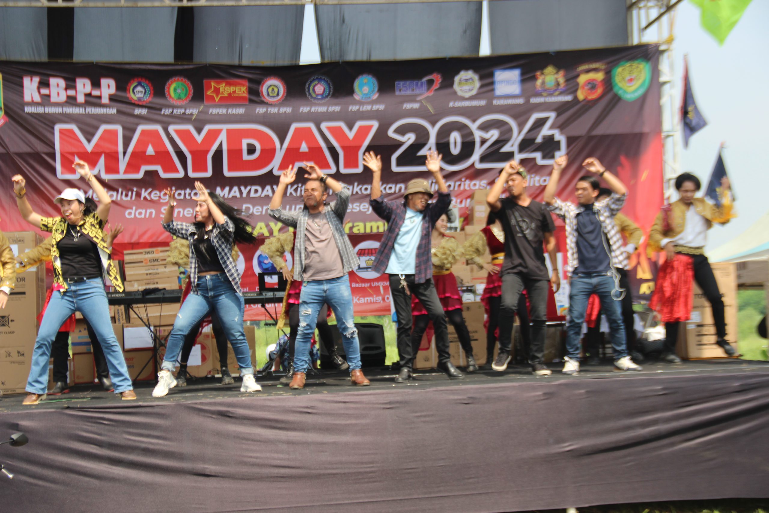 May Day 2024 is The Terampil Day ini, turut dimeriahkan oleh beberapa penampilan musik Seperti Penampilan Music May Day dari Ciptaan Kasatintelkam Polres Karawang Capten Monroe Agus Manurung, S.H bersama Perwakilan KBPP yang di iringi oleh Dancing Modern, Tarian Tradisional Jaipong Karawang, Pembacaan Ayat Suci Al-Qur’an, Organ Tunggal dan Penyanyi dari FSP SPSI. Selain itu ada juga Stand Bazzar Pasar Murah seperti Dari Bulog dengan Beras Subsidi, Minyak Goreng, Tepung Terigu, daging, dan Sayur Sayuran dengan Harga Subsidi dari Pemerintah Kabupaten Karawang dan Para Pengusaha UMKM Sekabupaten Karawang yang menyajikan Makanan ciri Khas dan Oleh oleh makanan dari Kabupaten Karawang.