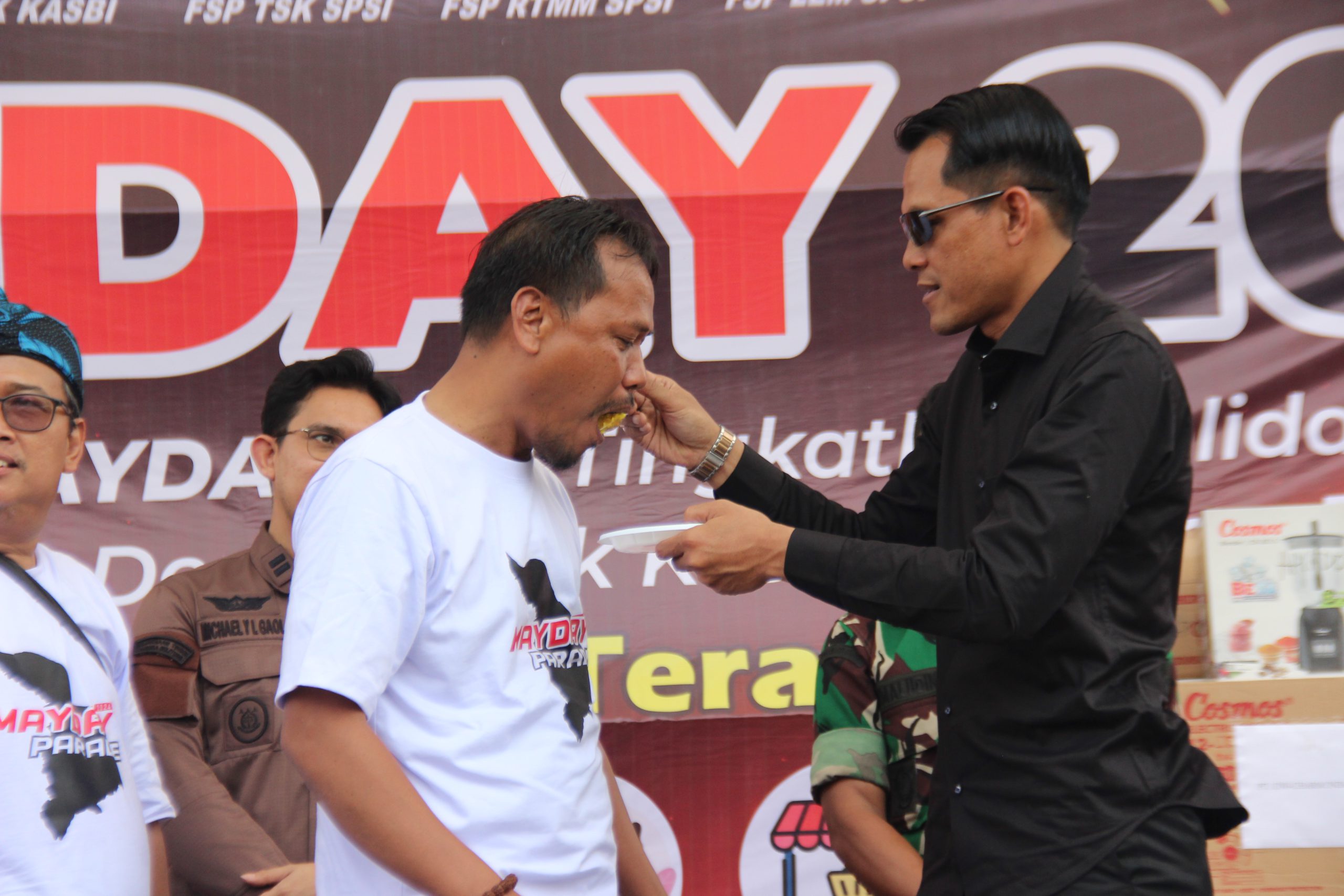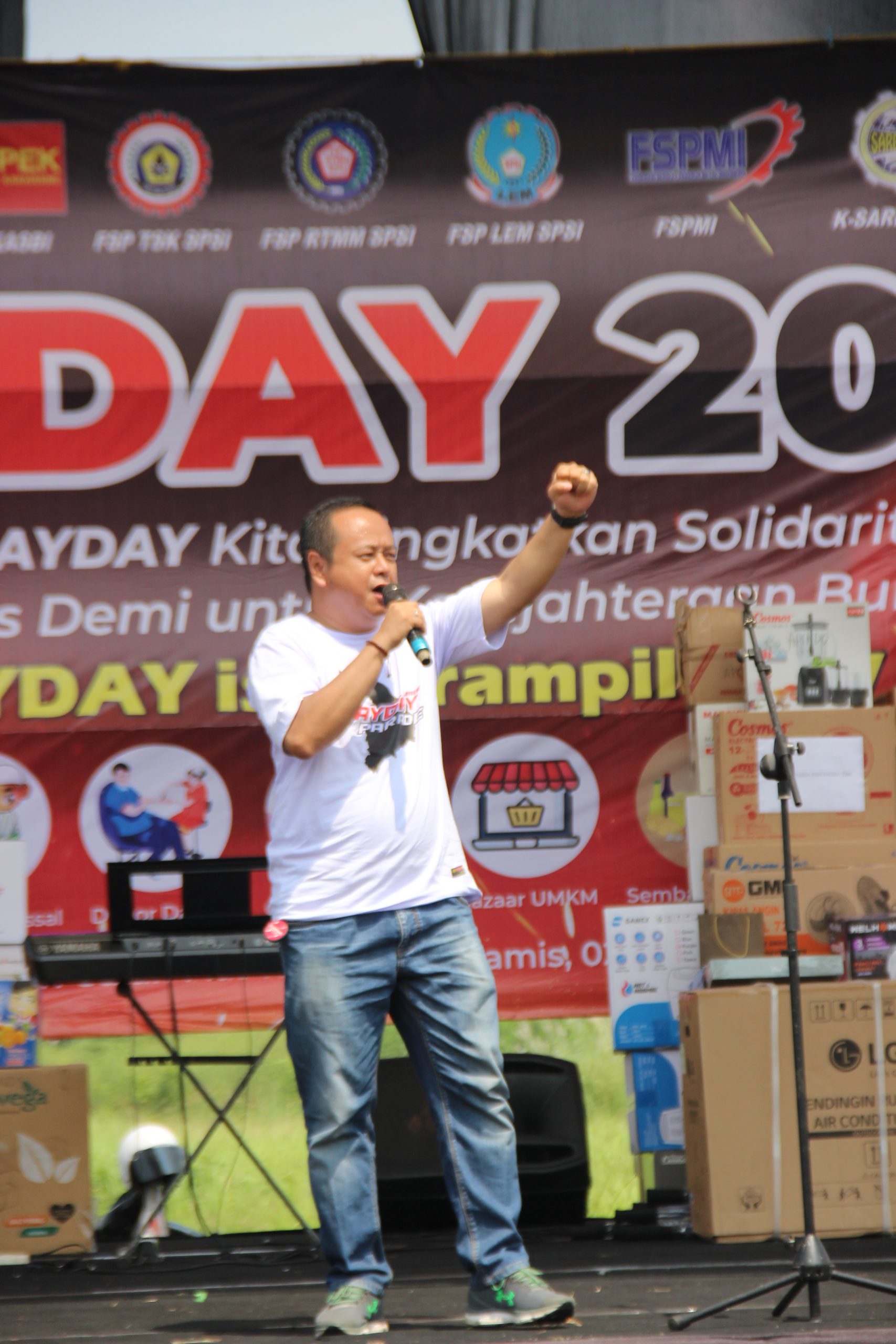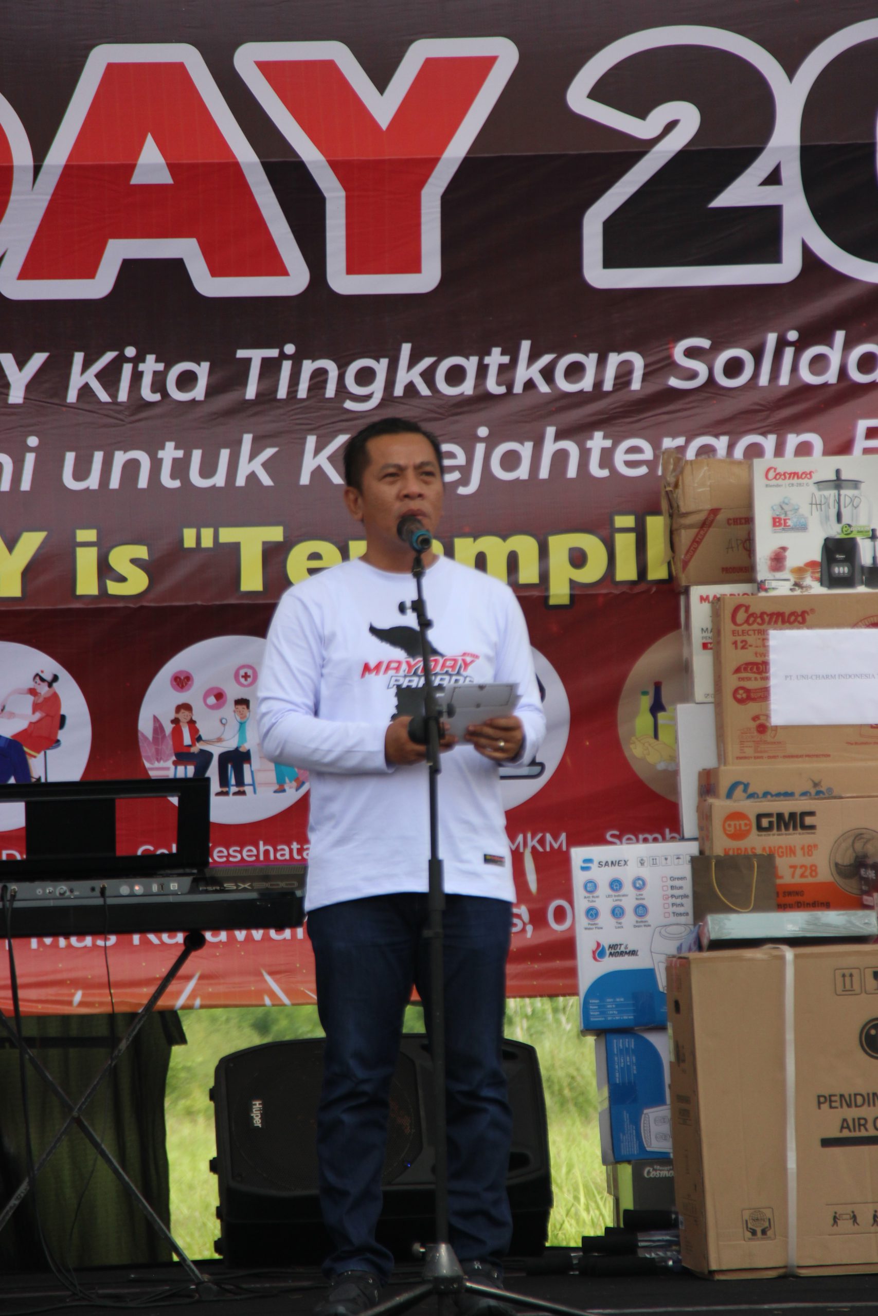 Ketua FSP TSK SPSI Karawang sekaligus Ketua Panitia May Day Is Terampil Day Dion Untung Wijaya, S.H mengucapkan terimakasih kepada Pemerintah Kabupaten Karawang yang selalu peduli dengan kesejahteraan kaum buruh dan kepada Para Pimpinan Federasi yang tergabung di KBPP.