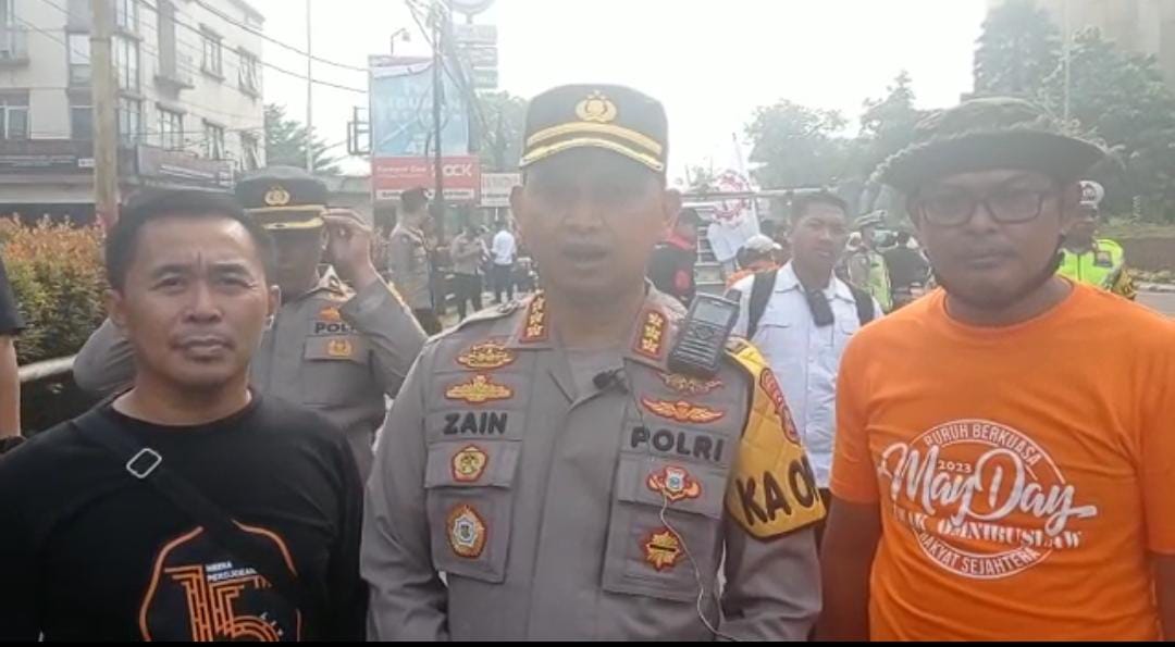 Sebelum pemberangkatan, Kapolres Metro Kota Tangerang, Kombes Zain Dwi Nugroho menyampaikan kepada seluruh massa aksi peringatan Hari Buruh.