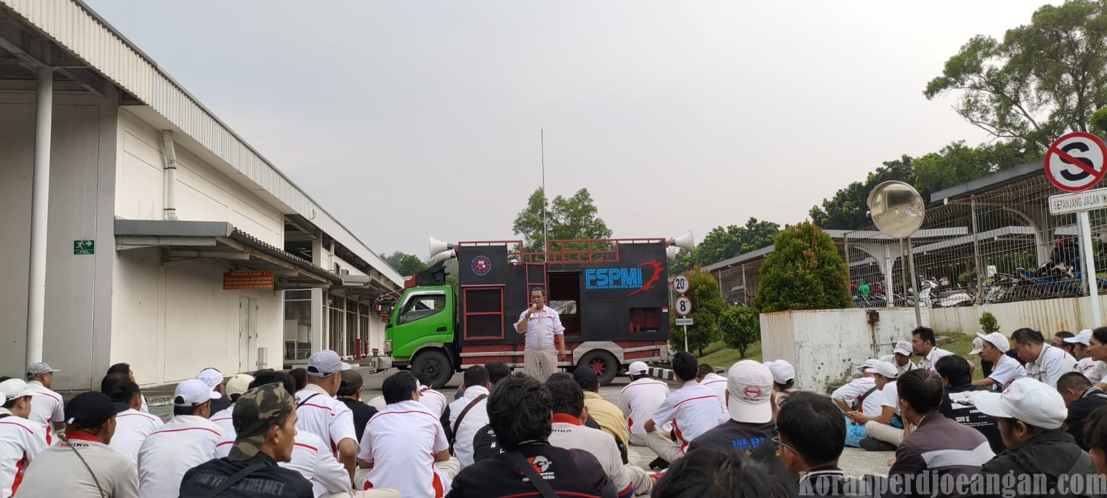Ratusan anggota berbaju seragam putih kebanggaan FSPMI tampak memadati area tersebut dengan tangan terkepal, menyuarakan tekad yang sama dalam memperjuangkan hak-hak buruh.