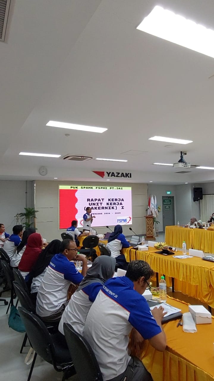 Pasuruan, KPonline – Rapat kerja unit kerja (Rakernik) 1 PUK SPAMK FSPMI PT Jatim Autocomp Indonesia (PUK JAI) berlangsung di Auditorium Big Hall PT JAI, Jl. Wonoayu No.26, Wonoayu, Gempol, Kecamatan Gempol, Kabupaten Pasuruan, Jawa Timur.