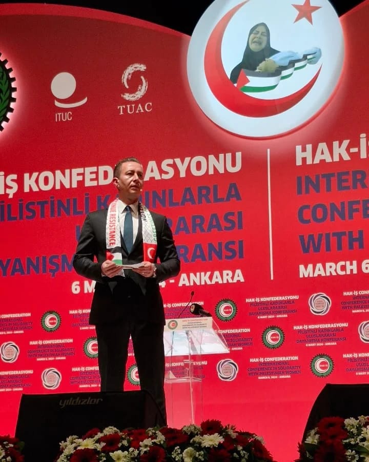 Pada acara utama dihadiri juga oleh Presiden Republik Turki, Reccep Tayyep Erdogan. Acara ini diselenggarakan oleh HAK – is Confederation menyelenggarakan konferensi untuk solidarity with palestinian womens atas kerja sama Konfederasi Serikat Buruh Turki dengan Konfederasi Serikat Buruh Internasional.