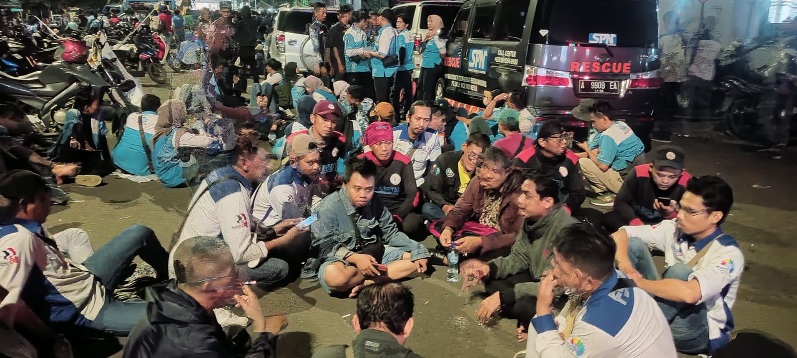Sampai pukul 23.00 Wib FSPMI Kab.Serang pun menunggu sekaligus melakukan konsolidasi anggota di depan Kantor Bupati.