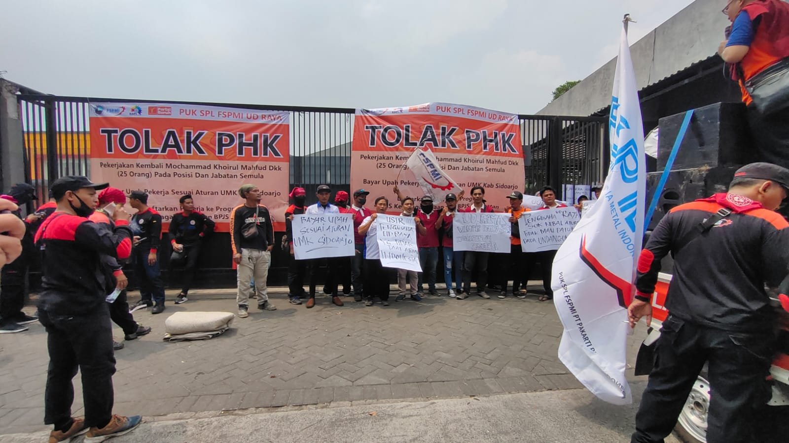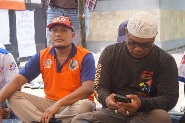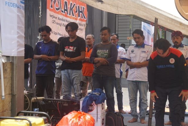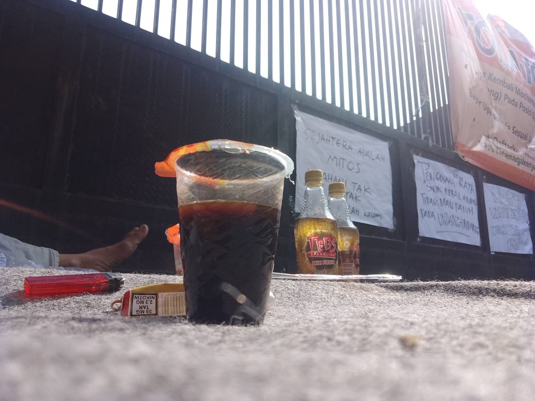 Pemandangan ini adalah bentuk perjuangan sebanyak 30 orang anggota FSPMI untuk bisa mendapatkan haknya ,hak upah ,hak Jaminan Sosial dan Status kerja yang jelas yang sebelumnya mereka juga telah dirumahkan menjelang puasa tanpa ada kompensasi.