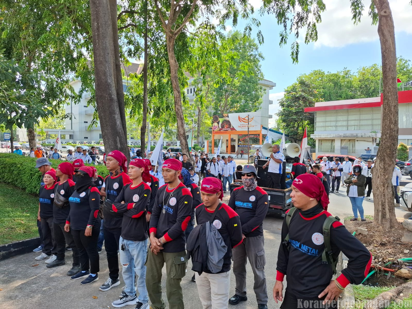 Batam, KPonline – Menjelang peringatan Hari Buruh Internasional atau May Day 2026, ratusan buruh yang tergabung dalam Federasi Serikat Pekerja Metal Indonesia (FSPMI) kota Batam. menggelar aksi unjuk rasa di depan kantor Graha Kepri Batam, Kamis (16/4/2026).