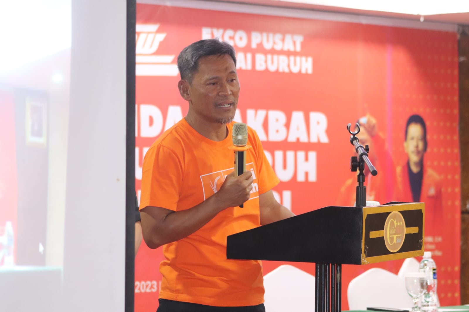 Riden Hatam Aziz, Presiden FSPMI dan juga sebagai Ketua Mahkamah Partai Buruh yang hadir pada acara itu dalam pidatonya menceritakan tentang sejarah dan profil partai buruh
