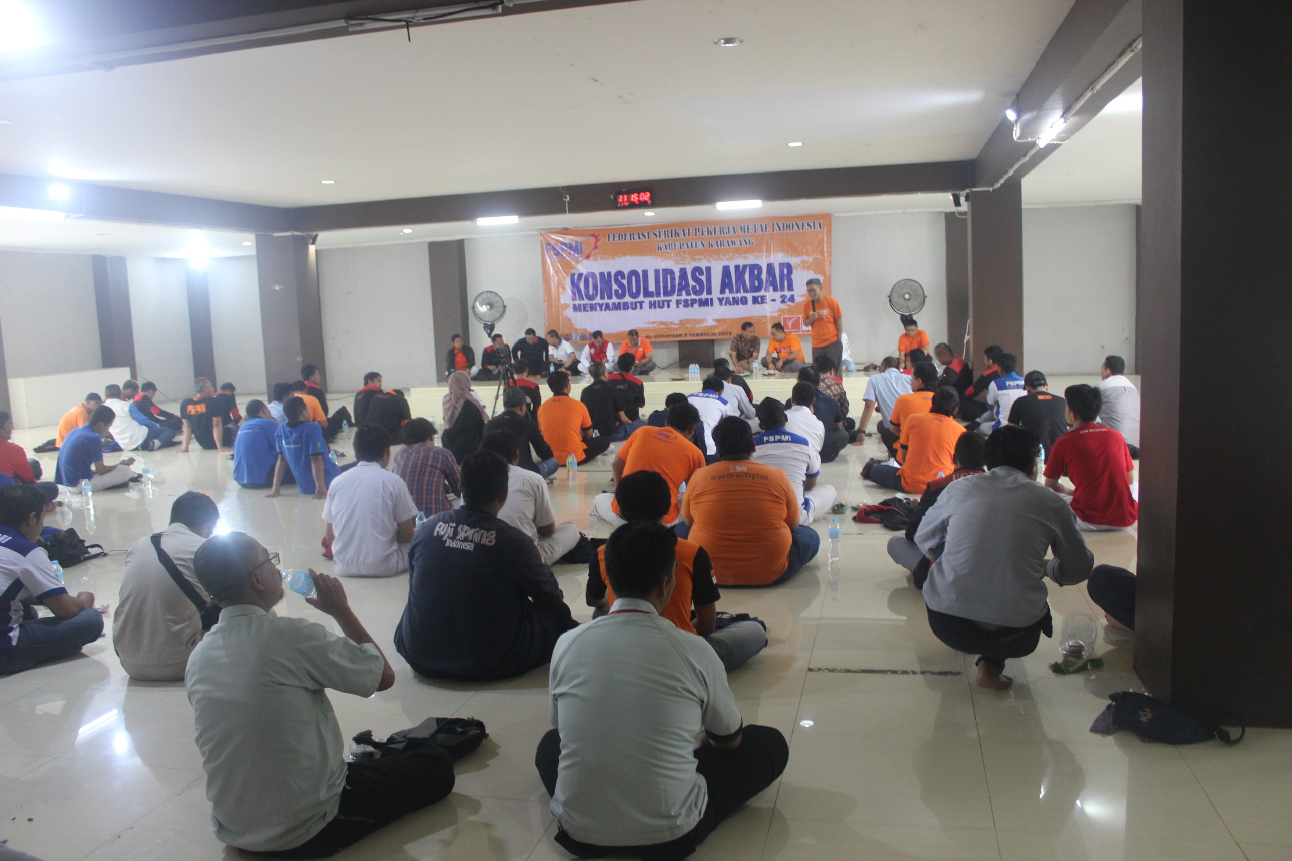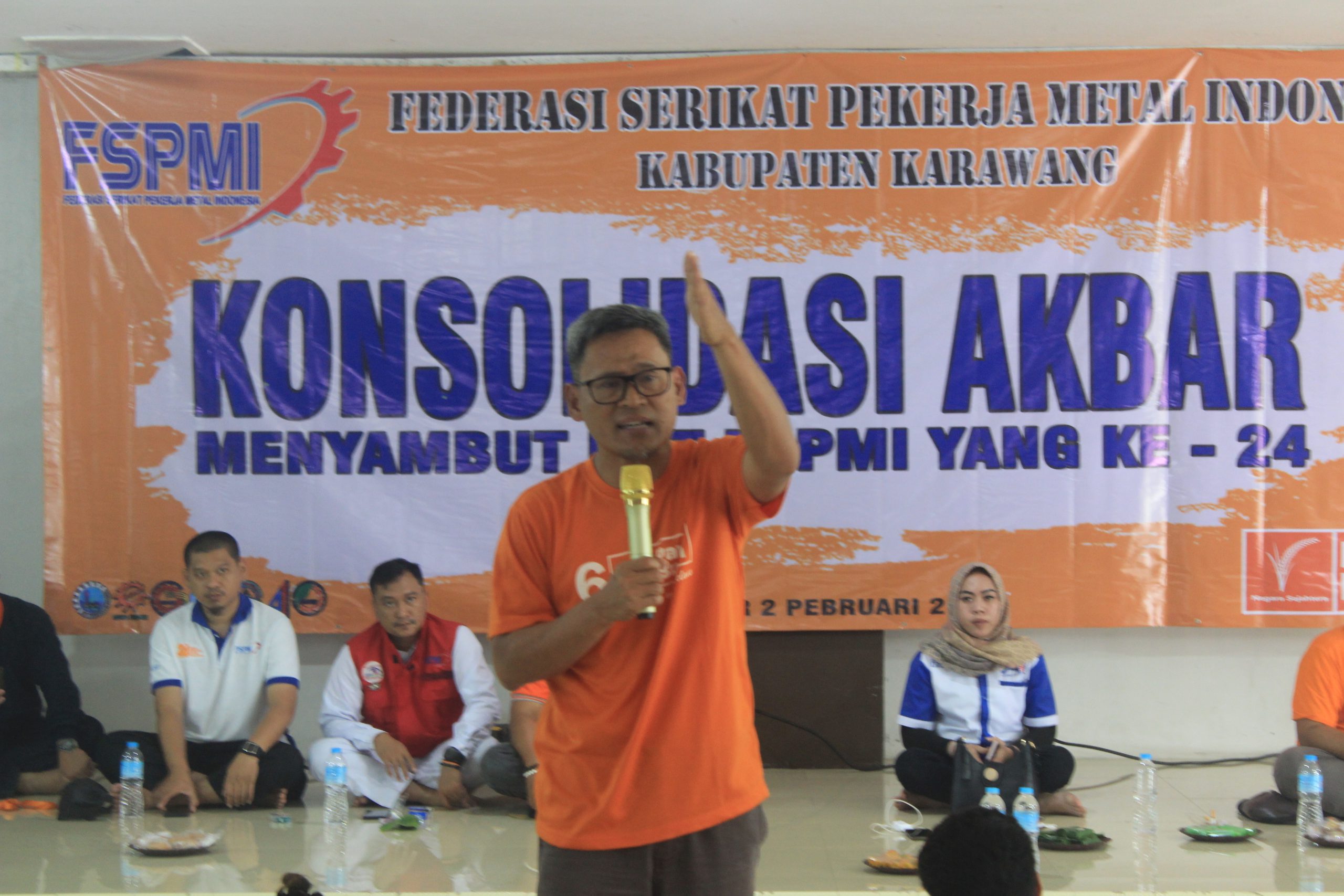 Karawang, KPonline – Presiden Federasi Serikat Pekerja Metal Indonesia sekaligus Ketua Mahkamah Partai Butuh, Riden Hatam Aziz, S.H menghadiri konsolidasi akbar FSPMI Karawang yang diadakan di Aula Serba Guna K.H. Ahmad Dahlan Masjid Al Ghammar di jalan Interchange Karawang Barat, Karawang. Kamis, (2/2/2023).