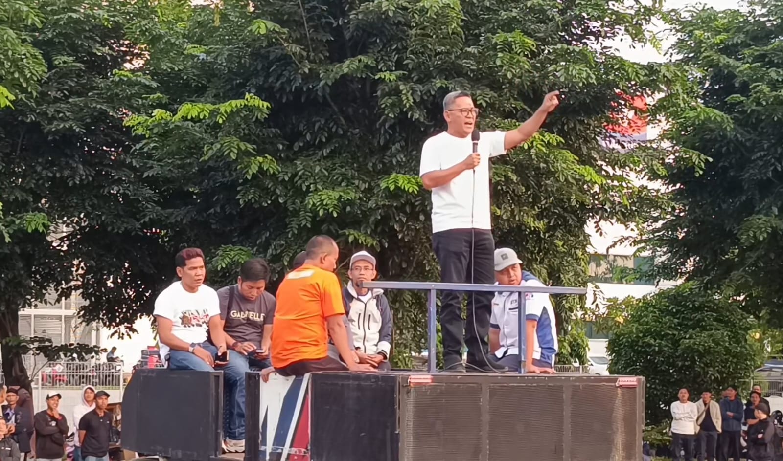 “Managemen Yamaha jika tidak memasukan kembali saudara ketua PUK dan Sekretaris PUK, maka di titik itu FSPMI tidak akan mundur satu jengkal pun,” tegas Riden Hatam Aziz, S.H di depan massa aksi.