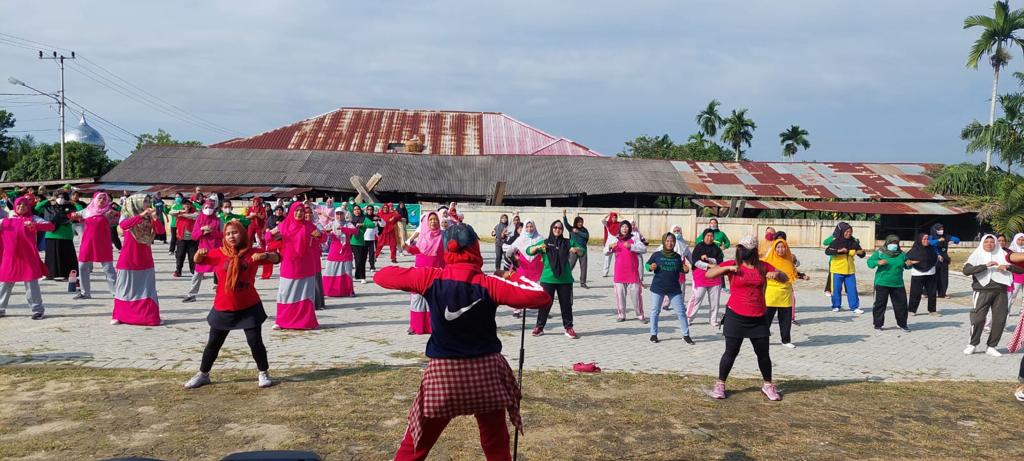 “Makcik encik yang hadir pada acara senam sehat lansia, acara ini yang mana kita beri tema dengan judul Badan Sehat Hati Pun Sonang Dan Tonang,”ucap Yogi.