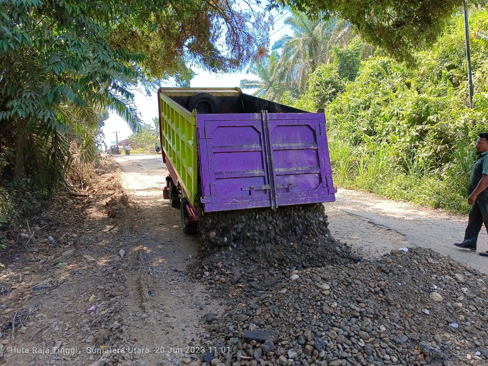 Sebanyak 20 unit dumptrukc kerikil dan sirtu dikerahkan untuk menimbun kondisi badan jalinsum yang rusak dan berlubang, untuk kenyamanan para kenderaan bermotor yang melintas dan mengurangi angka kecelakaan lalulintas akibat rusaknya infrastruktur jalinsum di kedua kecamatan itu, pada Kamis (22/06/2023).