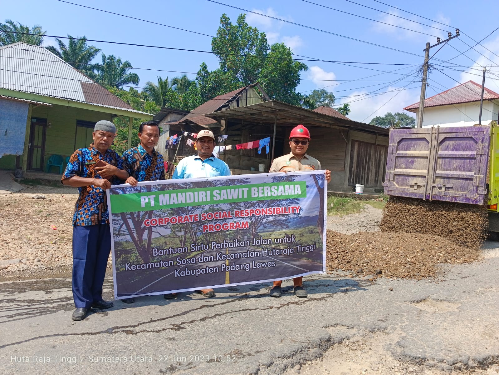 Didampingi Humas, Mahran Harahap, Staf Pembukuan Kebun, Mico Reynata, KTU PT. MSB, Ilham Pratama menyebutkan, kegiatan penyertuan dan penimbunan jalan rusak serta berlubang di jalinsum Kecamatan Sosa dan Kecamatan Huragi ini, bagian dari program Coorporate Sosialility and Responbility (CSR) PT. MSB tahun 2023.