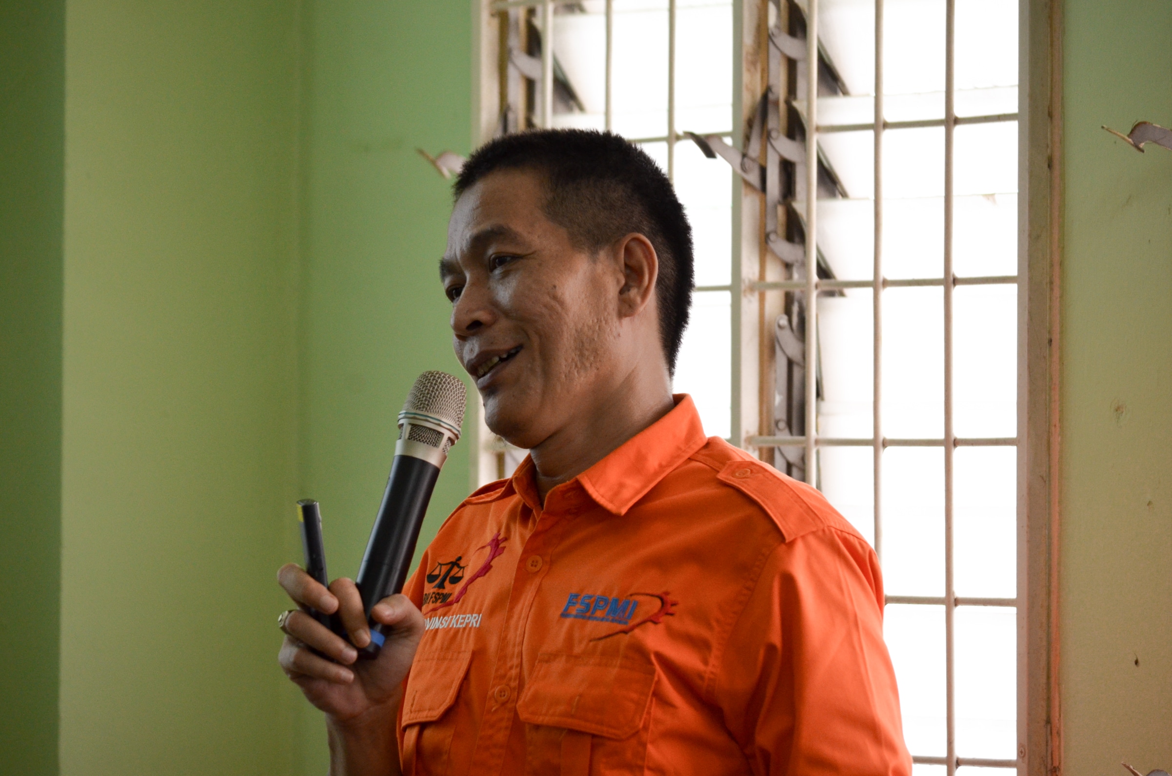 Pemateri Pendidikan Advokasi PUK. ETB ini dihadiri oleh Cok Berry dari Pimpinan Cabang FSPMI
