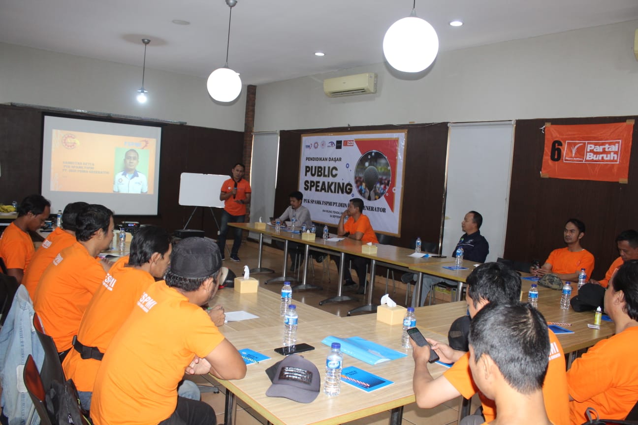 Bekasi, KPonline – Untuk mewujudkan pekerja yang mampu tampil untuk berbicara di depan umum dan berharap pengetahuannya bermaanfaat untuk dirinya, organisasi, perusahaan serta masyarakat luas, PUK SPAMK FSPMI PT Dein Prima Generator mengadakan Pendidikan Public Speaking, bertempat di Room Metting RM Riung Tenda, Harapan Indah Kota Bekasi, Sabtu (16/09/2023).