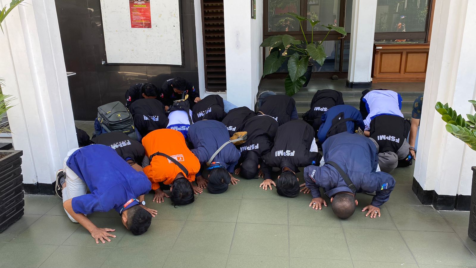 Setelah putusan dibacakan pengurus dan anggota melakukan sujud syukur sebagai bentuk rasa syukur atas putusan PHK sepihak Meri Mujiati.