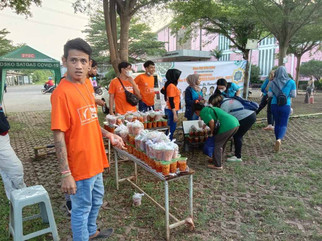 ” Mohon maap apabila ada kekurangan tidak seluruh kebagian karena pembagian ini hanya seribu Pcs, semoga di hari yang lain kami bisa berbagi lebih banyak lagi ” ujar yudi dengan ramah dan santun menyampaikan kepada anggota yang sedang antri mengambil pembagian takjil, dengan tertib dan tetap mengedepan kan protokoler kesehatan.
