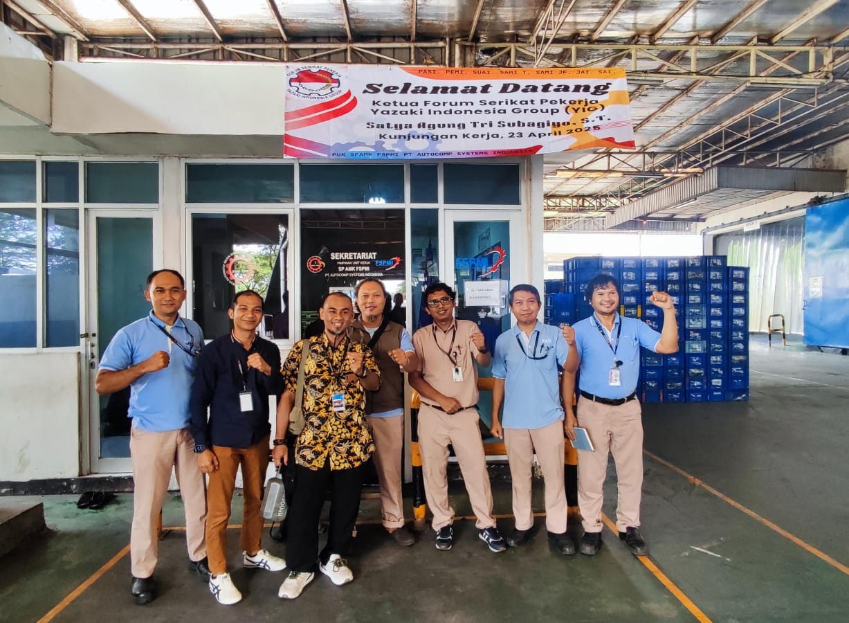 Bekasi, KPonline – Pengurus Forum Yazaki Indonesia Group Satya Agung Tri Subagiyo S.T,. sebagai Ketua dan Tedi Iswantara sebagai Sekretaris mengunjungi PUK SPAMK FSPMI PT. Autocomp Systems Indonesia, Kawasan Delta Silicon 2, Cikarang Pusat, Rabu (23/04/2025).