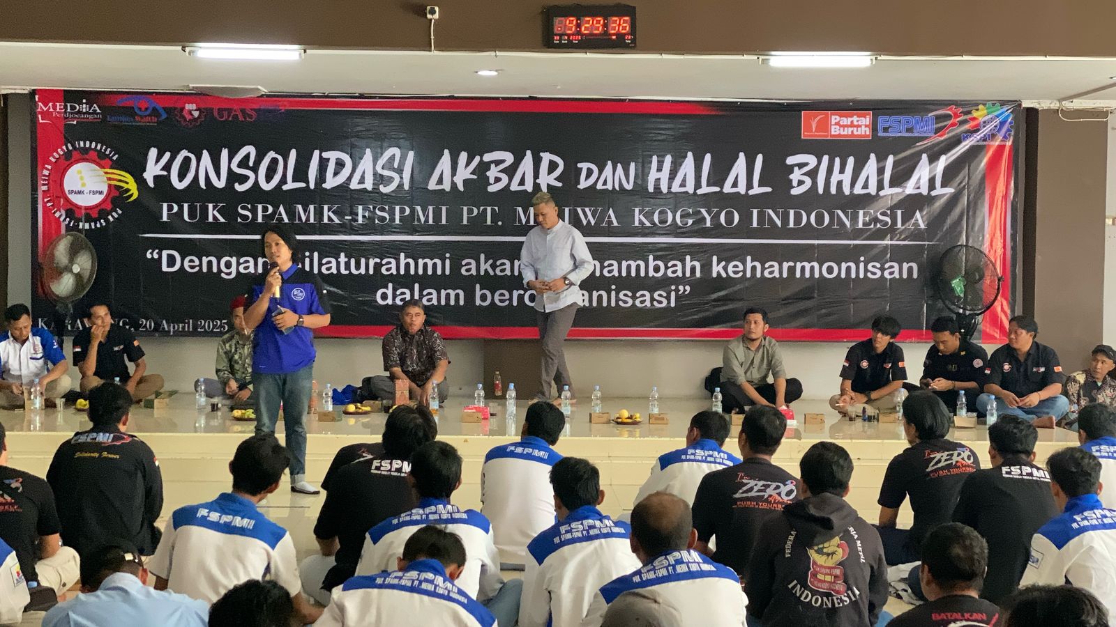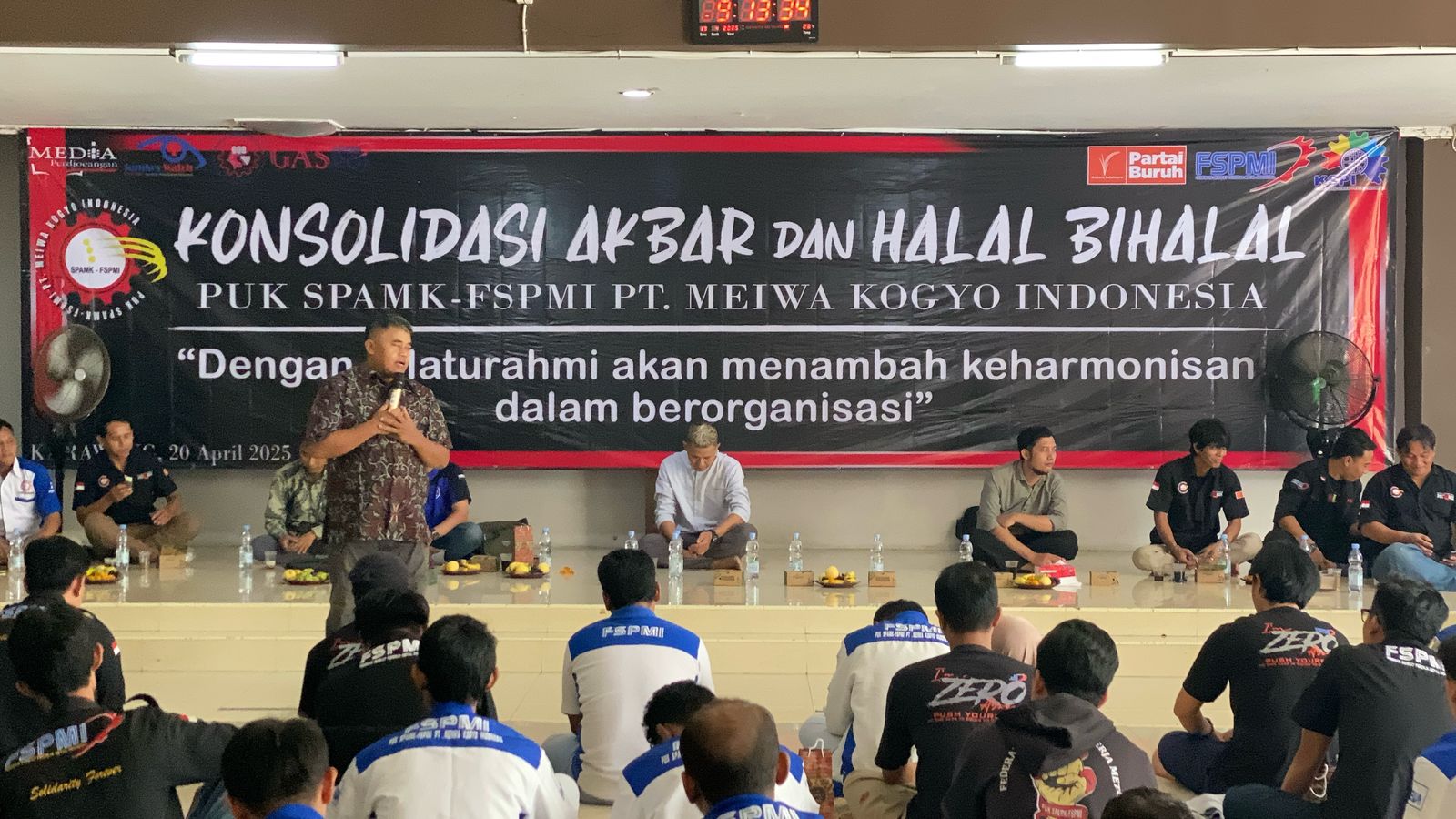 Karawang, KPonline – Bertempat di Aula Serba Guna KH. Ahmad Dahlan Rest Masjid Al Ghammar Karawang Barat, PUK SPAMK FSPMI PT. Meiwa Kogyo Indonesia menggelar Konsolidasi Akbar dan Halal Bihalal pada hari Minggu tanggal 20 April 2025.