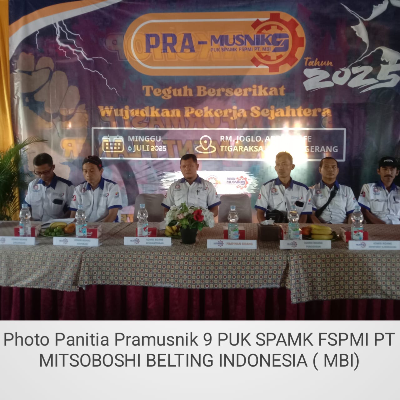 Tangerang, KPonline — Menjelang Musyawarah Unit Kerja (Musnik) ke-9, Pimpinan Unit Kerja Serikat Pekerja Automotif Mesin dan Komponen (PUK SPAMK) FSPMI PT Mitsuboshi Belting Indonesia (MBI) menggelar kegiatan Pra-Musnik pada Minggu, 6 Juli 2025 di Rumah Makan Joglo Ardes Cafe, Kabupaten Tangerang.