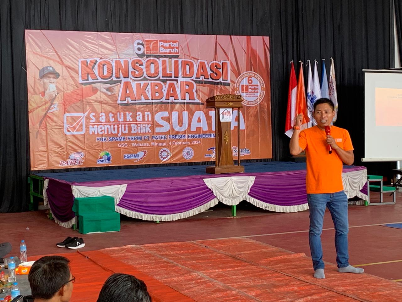 Bekasi, KPonline – Bertempat di Gedung Serba Guna, Perum Wahana Cikarang, PUK SPAMK FSPMI PT. Patec Presisi Engineering menyelenggarakan Konsolidasi Akbar Pemenangan Partai Buruh yang diikuti anggotanya, Minggu (04/02/2024).