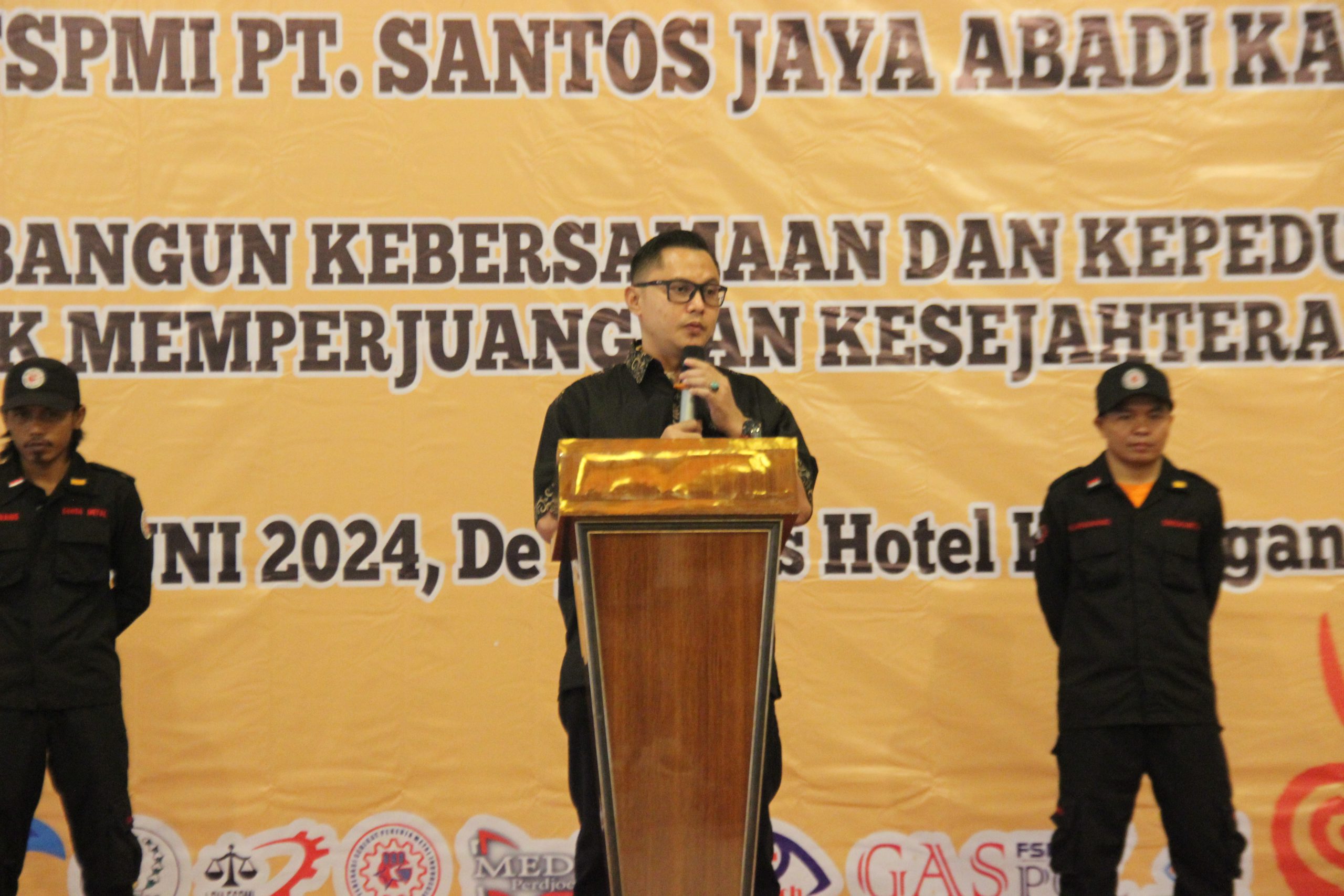“PUK SPAI FSPMI PT. Santos Jaya Abadi akan melaksanakan pesta demokrasi, Kita harus menyiapkan kaderisasi, tentunya kita di PC SPAI FSPMI Karawang dan di PUK SPAI FSPMI PT. Santos Jaya Abadi sudah menyiapkannya semenjak dari tahun 2014. Makanya struktur organisasi di Karawang mau Musnik maupun Muscab selalu dengan musyawarah mufakat”, ungkapnya Rahmat