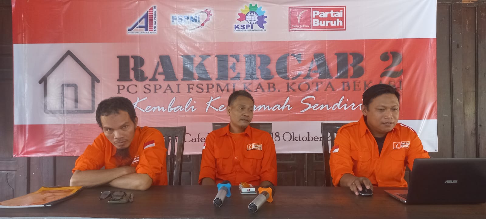 Bekasi, KPonline – Bertempat di Warna Warni Resto, Jl. Inspeksi Kalimalang No.36, Kecamatan Tambun Selatan, Kabupaten Bekasi, Jawa Barat, Pimpinan Cabang Serikat Pekerja Aneka Industri Federasi Serikat Pekerja Metal Indonesia (PC SPAI FSPMI) Kabupaten/Kota Bekasi mengadakan rapat kerja cabang (rakercab) pada Rabu (18/10/2023).
