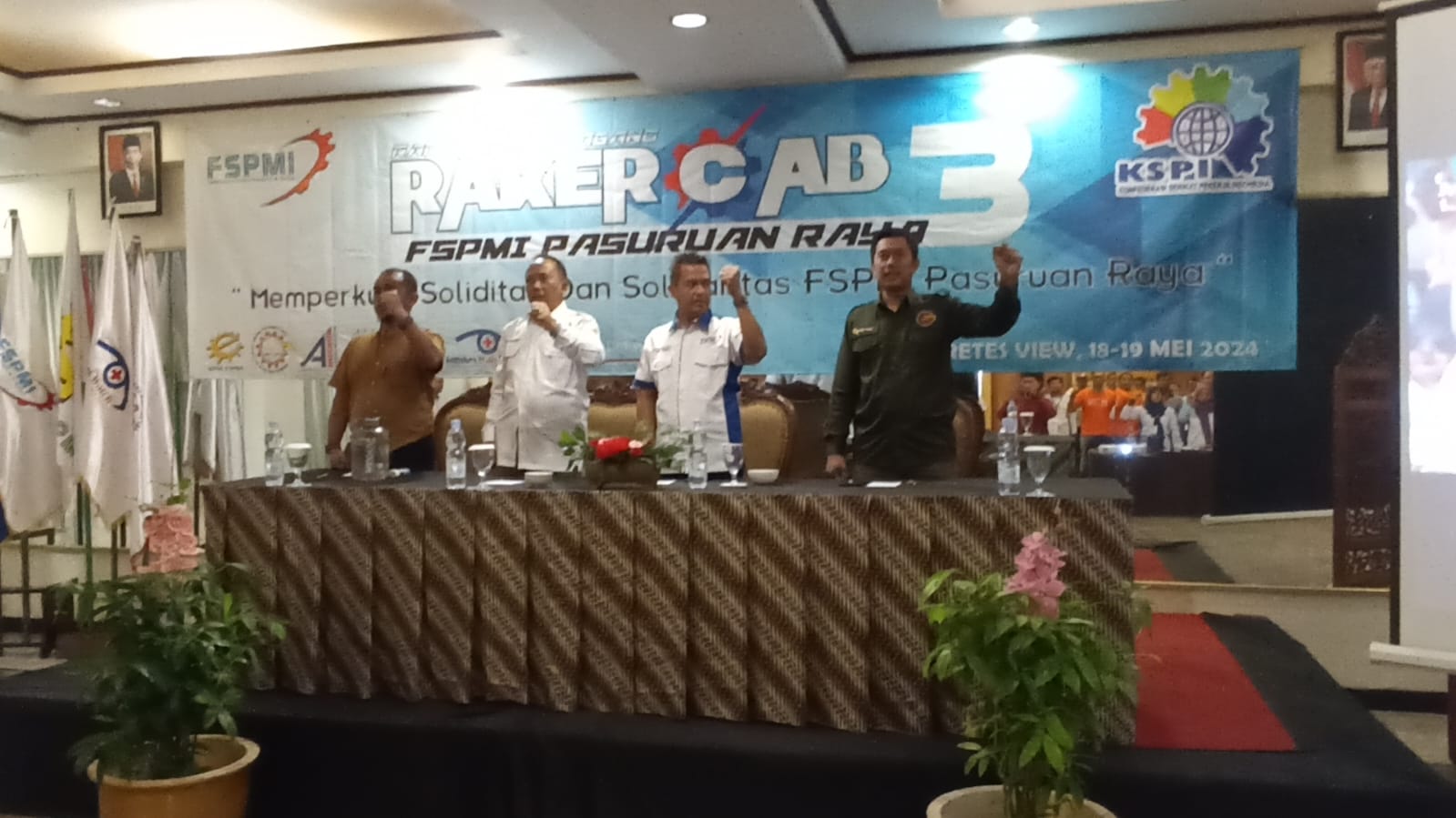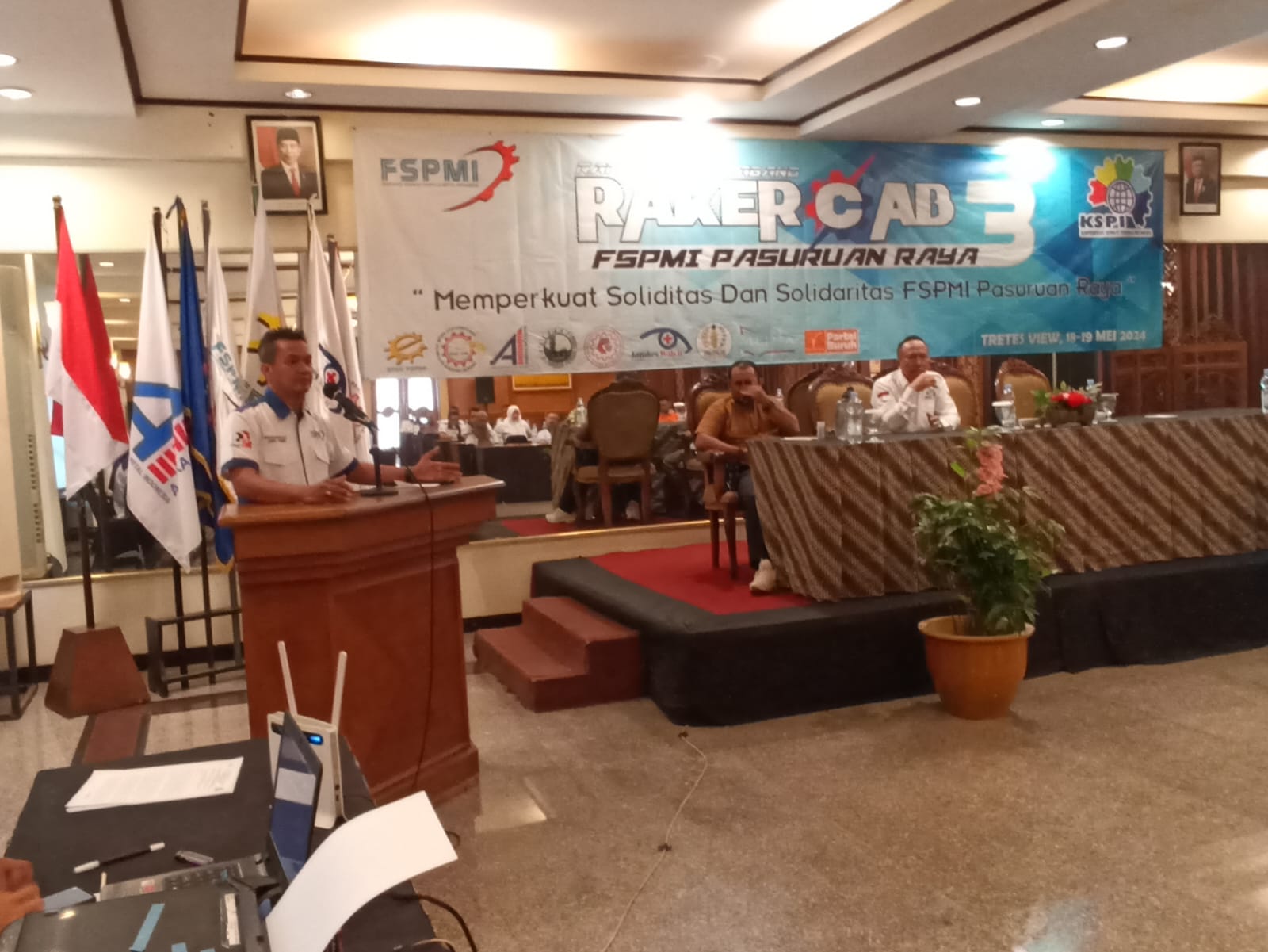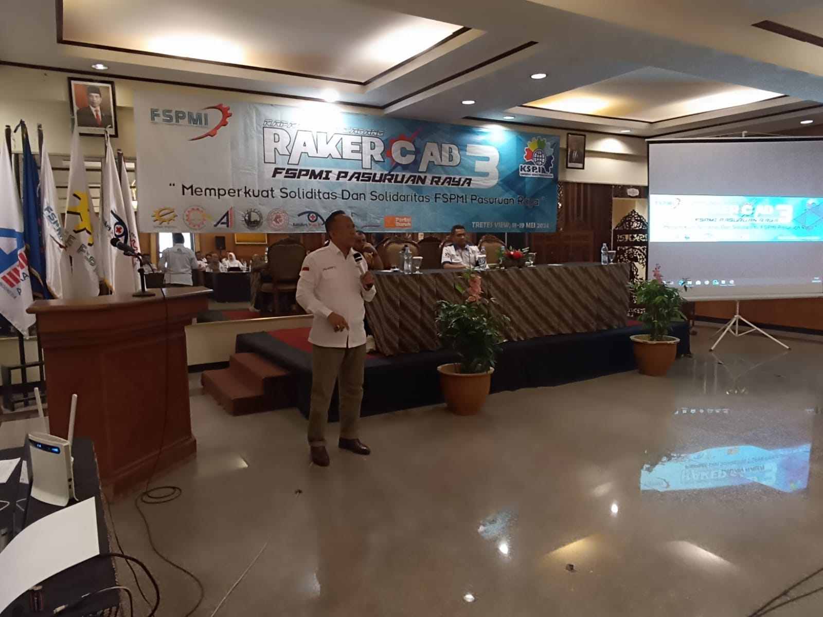 Pasuruan, KPonline – Konsulat Cabang (KC) FSPMI Pasuruan Raya mengadakan Rapat Kerja Cabang (Rakercab) yang ketiga dengan mengambil tema “Memperkuat Soliditas dan Solidaritas FSPMI Pasuruan Raya”.
