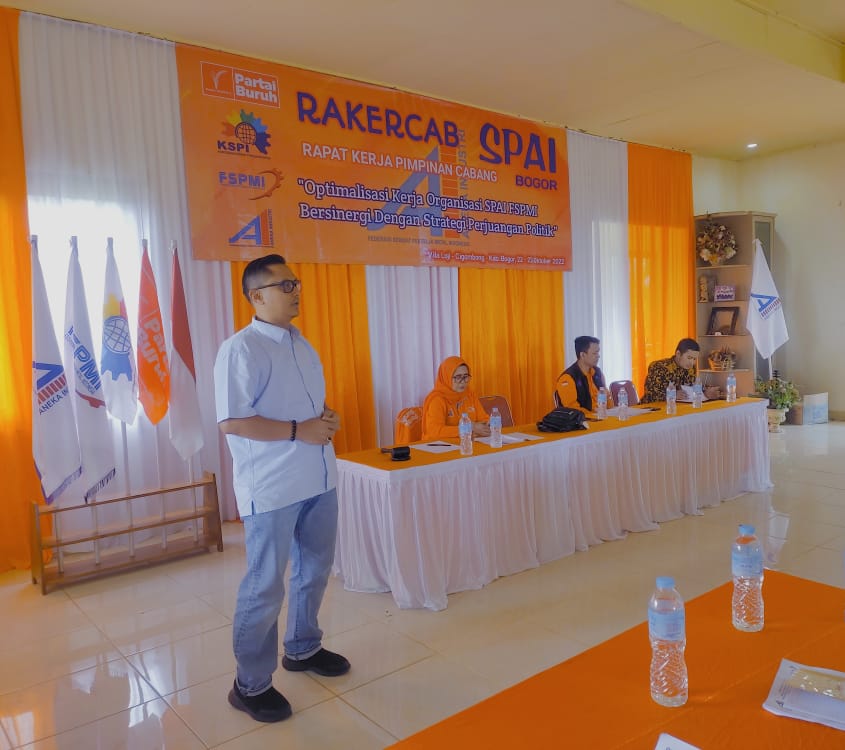 Diawali sambutan Teti Supianti sebagai Ketua PC SPAI FSPMI Kab/Kota Bogor yang mengulas hasil rekomendasi – rekomendasi Rakercab, diantaranya dari sisi Organisasi yaitu pembentukan tim – tim khusus untuk menangani permasalah yang sedang menjadi issu utama, dan dari sisi perjuangan politik SPAI FSPMI Kab/Kota Bogor mendukung penuh dalam perjuangan Organisasi melalui Partai Buruh. Selain dukungan penuh perjuangan di Partai Buruh, SPAI FSPMI Kab/Kota Bogor juga mendukung Obon Tabroni menjadi Bupati Bekasi, Obon Tabroni adalah Ketua Umum PP SPAI FSPMI periode pertama, Pengurus Majelis Nasional FSPMI, dan sebagai dewan perwakilan di DPR RI di Komisi 3.