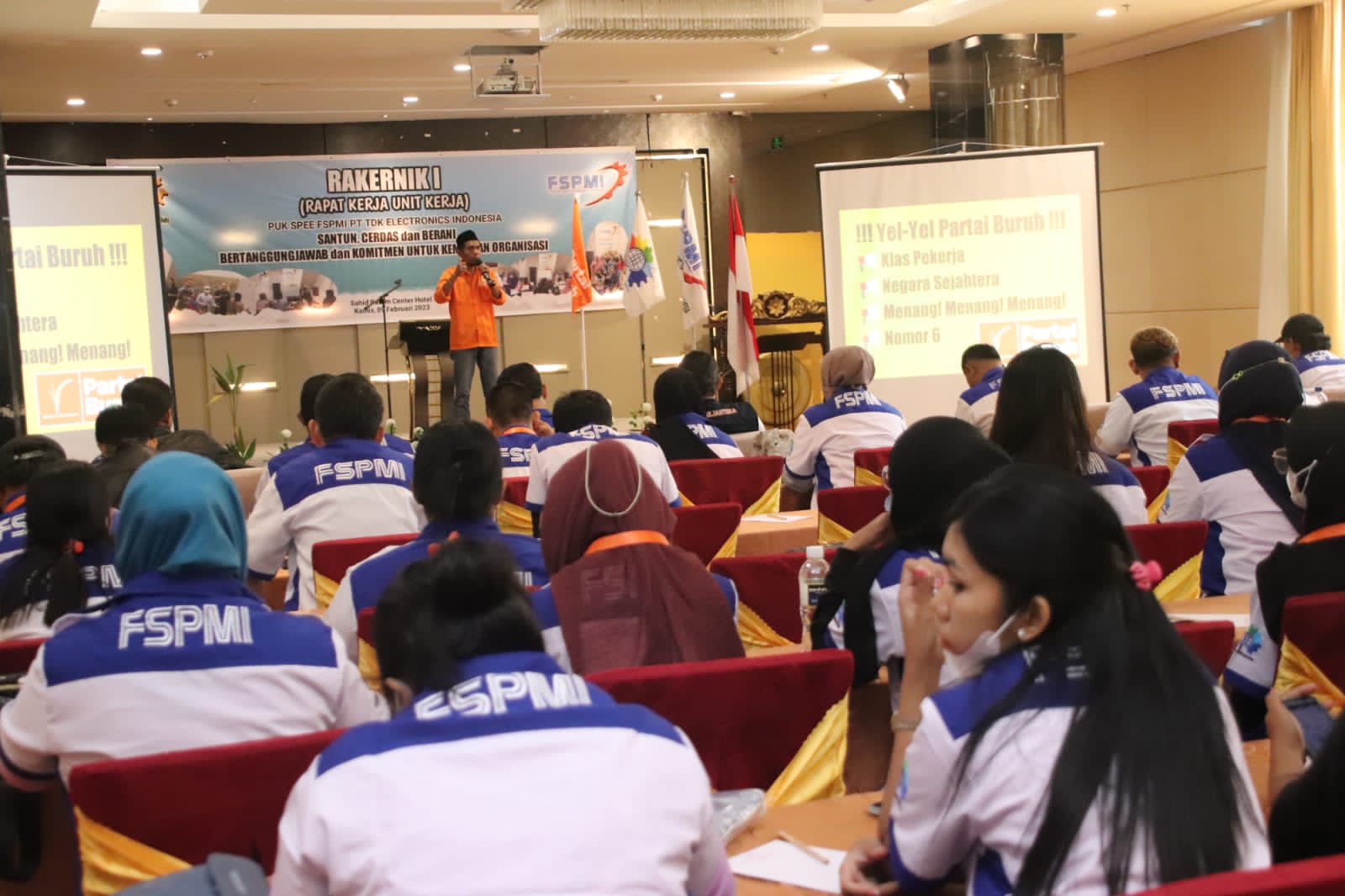 Rakernik I PUK PT TDK Batam dihadiri Wakil Ketua Umum Pimpinan Pusat SPEE Alfitoni, Ketua Konsulat Cabang FSPMI Kota Batam Yapet Ramon, dan Ketua Pimpinan Cabang SPEE FSPMI Kota Batam Masrial Sutan Makmur.