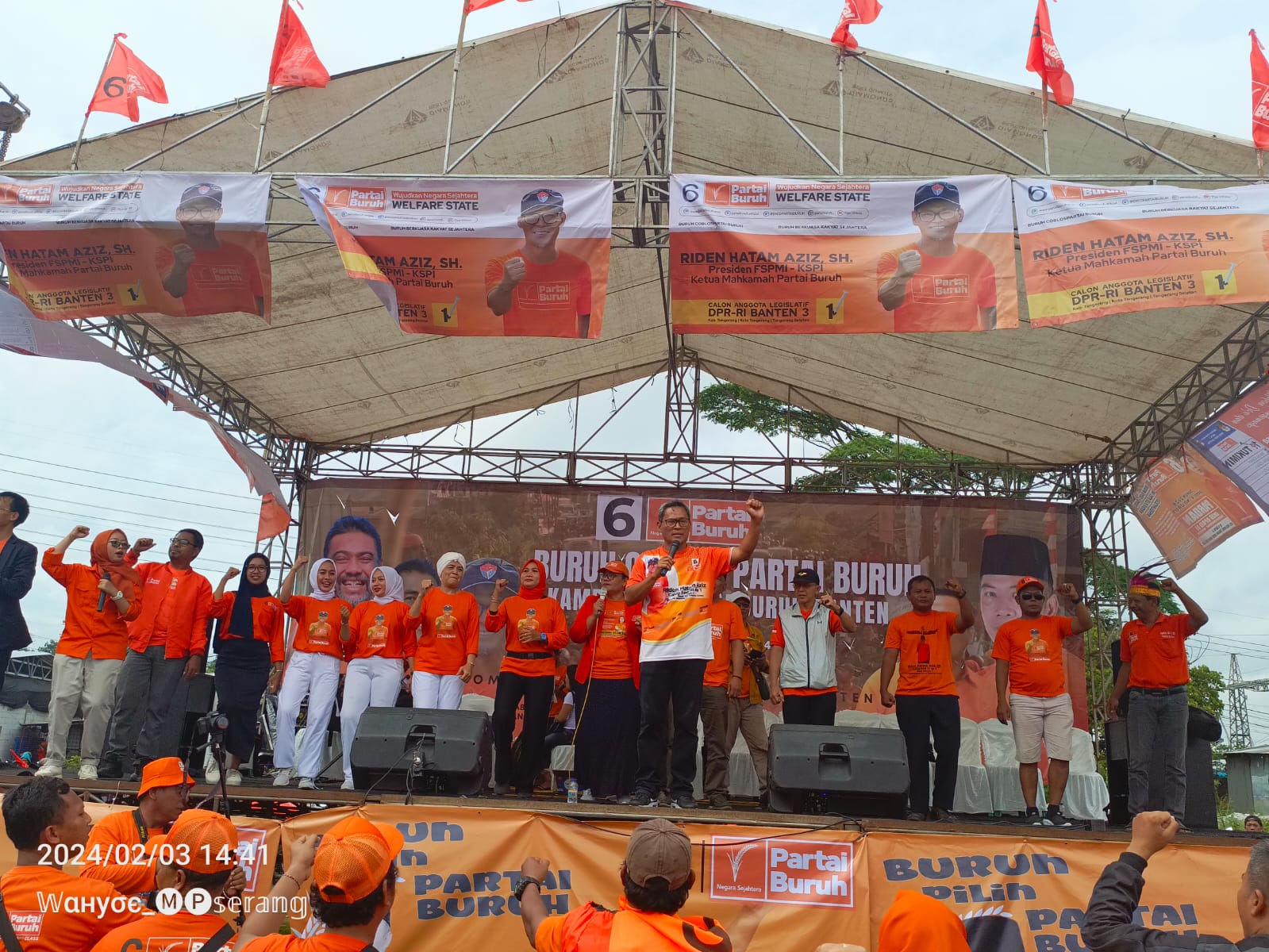 “Hari ini adalah hajat dan kegiatan kita, sesuai slogan kita selangkah lagi. Banten dikenal sebagai kota 1000 industri contoh Kabupaten Tangerang daftar pemilih tetap 2,37 juta sebanyak hampir 1,1 juta adalah karyawan pabrik,” kata Riden Hatam Aziz selaku Ketua Mahkamah Partai Buruh.