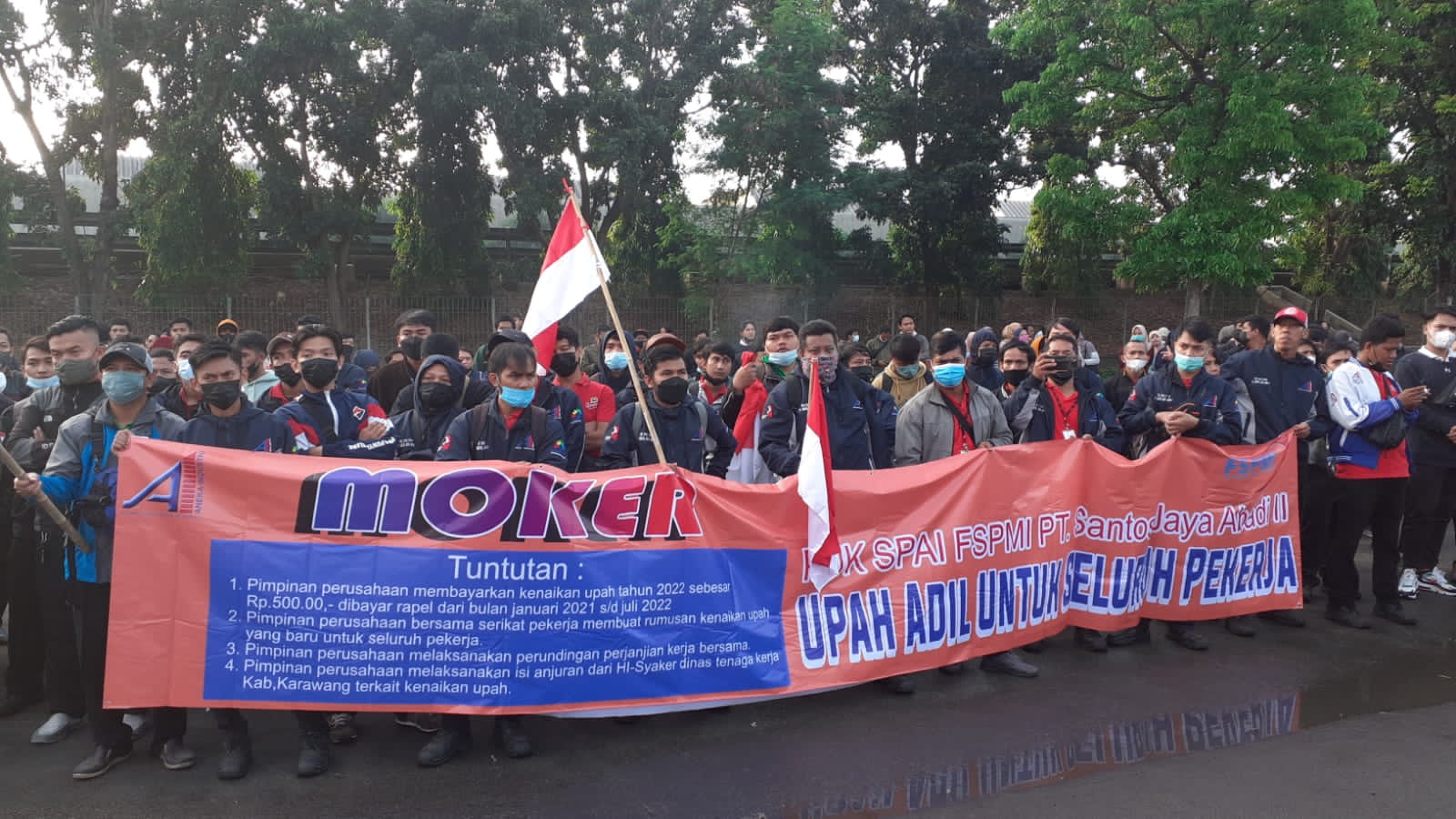 “Adapun hal yang mendasari Aksi Mogok Kerja dan Aksi Unjuk Rasa Kawan – kawan anggota Serikat Pekerja Aneka Industri PT. Santos Jaya Abadi 2 adalah tidak naiknya upah pada tahun 2021 hingga 2022, Sebagaimana kita ketahui upah adalah urat nadi bagi kaum buruh, maka lawan tanpa kompromi”, Kata Ranto Aprianto selaku Sekretaris Umum PP SPAMK FSPMI saat orasi di Atas Mobil Komando FSPMI.