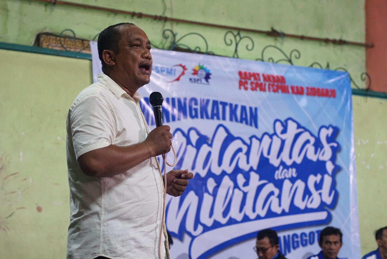“Jangan sampai PUK FSPMI Kabupaten Sidoarjo terkontaminasi dari pemikiran dan pemahaman Pihak Perusahaan yang sering kali menyampaikan bahwa saat ini kondisi Perusahaan sedang sulit dsb. Tetapi bukan berarti PUK dalam bekerja di lingkungan Perusahaan seenaknya sendiri. ”