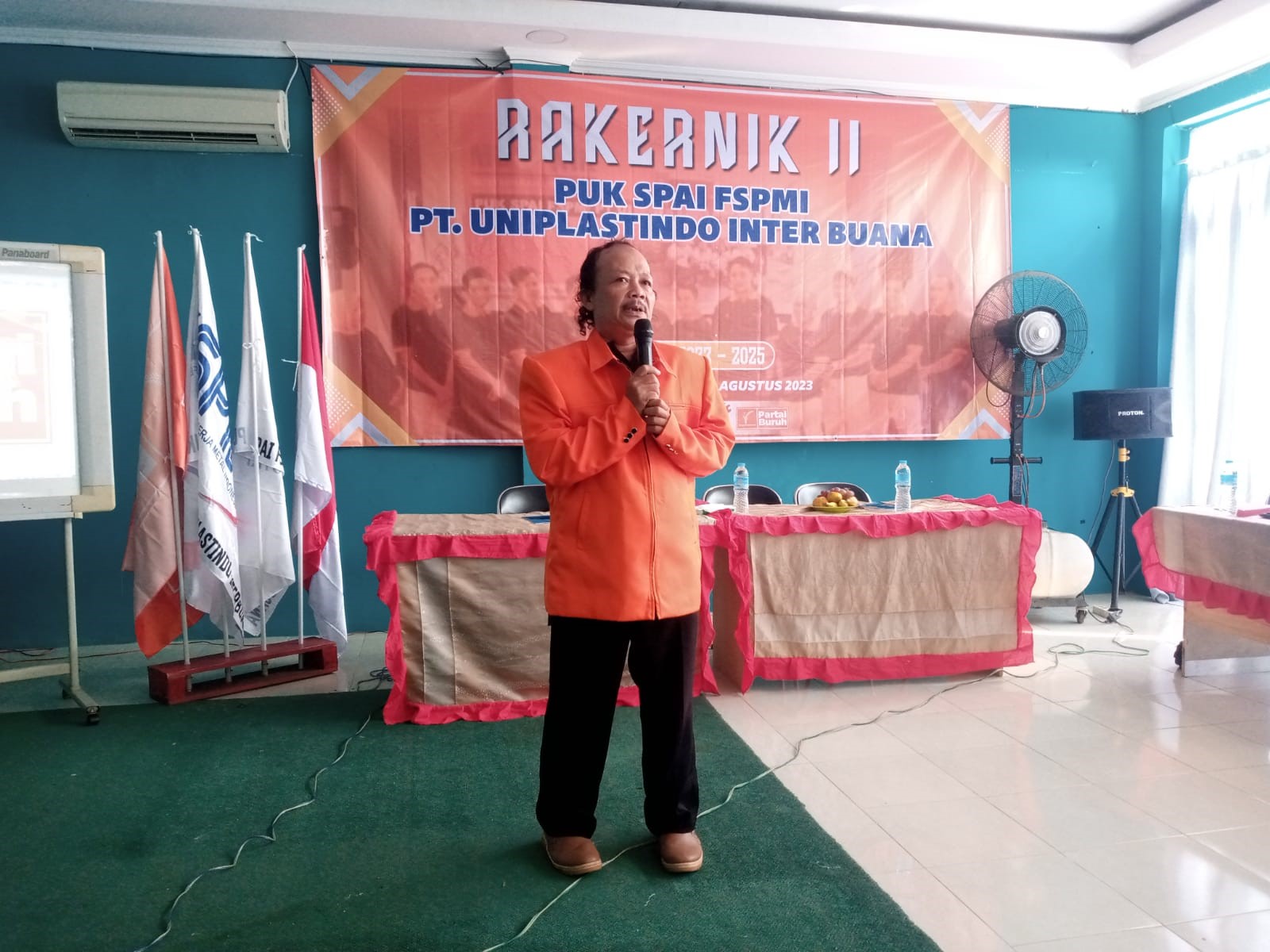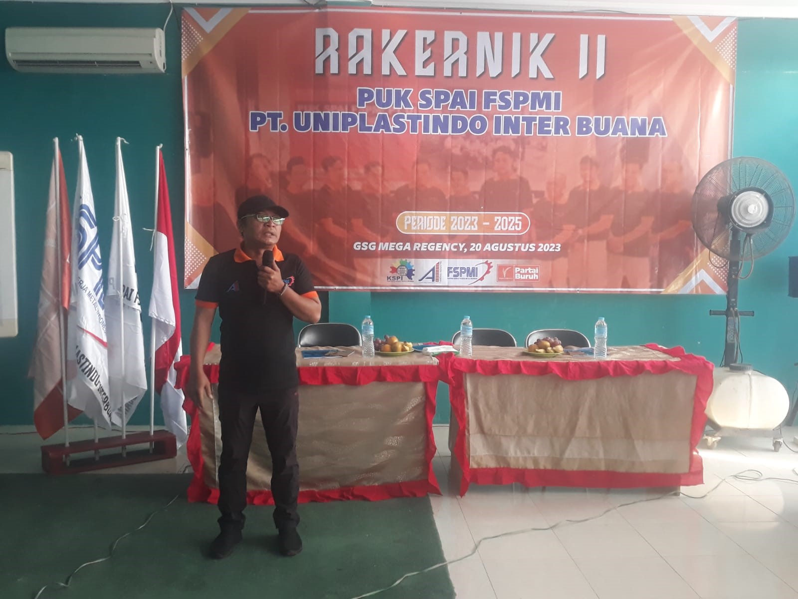 Dalam agenda Rakenik tersebut hadir juga Ketua PUK SPAI FSPMI PT. Uniplastindo Interbuana periode pertema dan periode kedua tahun 2009 – 2016 Saudara Nur Mubin, S.M., M.M. yang juga merupakan Pengurus Pimpinan Pusat SPAI FSPMI dan Pengurus DPP FSPMI periode tahun 2021 – 2026 yang lebih akrab dengan panggilan Pak Dhe. Dalam sambutannya Saudara Nur Mubin, S.M., M.M. menyampaikan bahwa salah satu Indikator keberhasilan dari sebuah Organisasi adalah adanya proses dan sarana evaluasi kinerja organisasi semua kekurangan dapat diperbaiki dan semua pencapaian dapat ditingkatkan menjadi lebih baik lagi sehingga dalam pelaksanaan Rapat Kerja Unit Kerja ini diharapkan semua peserta aktif dalam setiap sesi Rapat Paripurna untuk memberikan saran maupun rekomendasi yang nantinya diharapkan mampu menjadi sebuah masukan dan solusi bagi Organisasi. Sambutan terakhir yang sekaligus membuka acara secara resmi disampaikan oleh Perwakilan Pimpinan Cabang SPAI FSPMI Kabupaten/Kota Bekasi yang diwakili oleh Wakil Ketua Bidang Organisasi Ustadz Nazirul Al Ghobi.