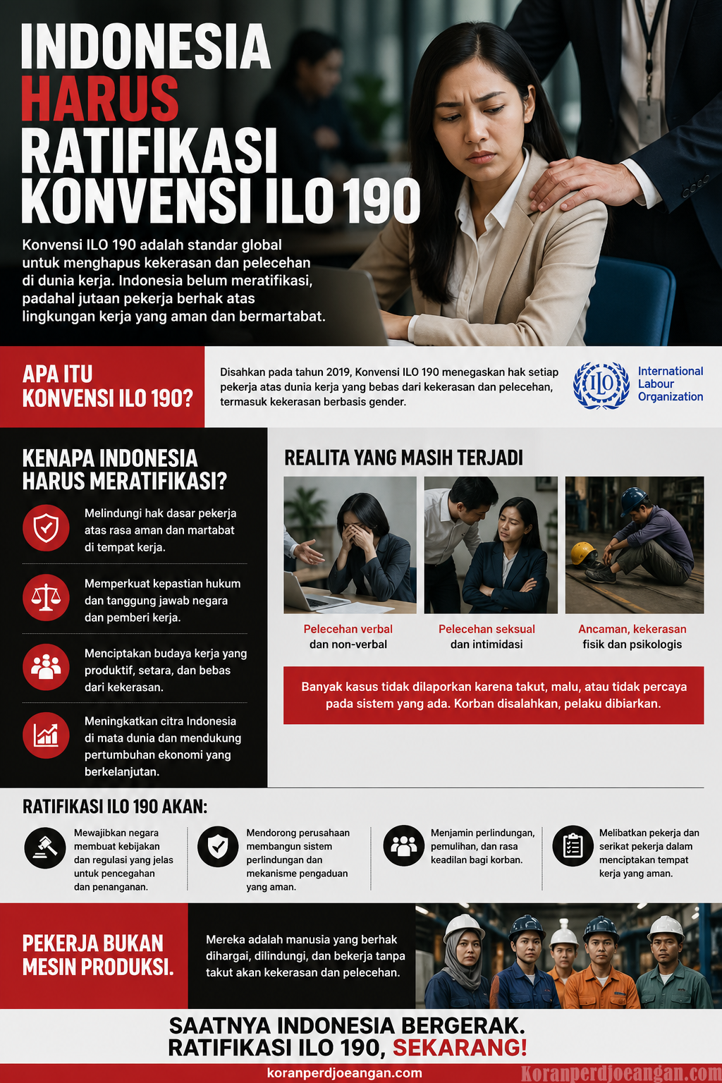 Indonesia tidak kekurangan regulasi. Tapi sering kali yang kurang adalah keberanian untuk mengakui masalah dan mengambil langkah tegas. Ratifikasi Konvensi ILO 190 adalah ujian keberanian itu. Apakah negara benar-benar ingin melindungi pekerjanya, atau hanya sekadar membuat slogan?