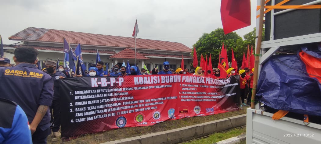 Aksi FSPMI 21 April 2022 Bersama KBPP ini setelah dari Disnakertrans Kabupaten Karawang akan di lanjutkan ke Pemerintah Daerah (Pemda) Kabupaten Karawang.