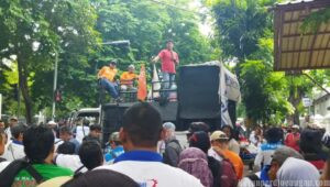 Surabaya, KPonline — Ratusan pekerja yang tergabung dalam PUK SPAI–FSPMI PT Pakerin, Kabupaten Mojokerto, menggelar aksi unjuk rasa di depan Pengadilan Negeri Surabaya, Jalan Arjuno No. 16–18, pada Senin (10/11/2025). Aksi yang berlangsung sejak pukul 11.20 WIB ini diikuti sekitar 500 orang pekerja dan dipimpin oleh Ipang Sutrisno, selaku koordinator lapangan.