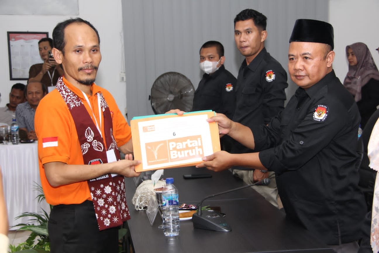 Ratusan Simpatisan Longmarch Mengantarkan Bacaleg Partai Buruh Daftar Di KPUD Sidoarjo