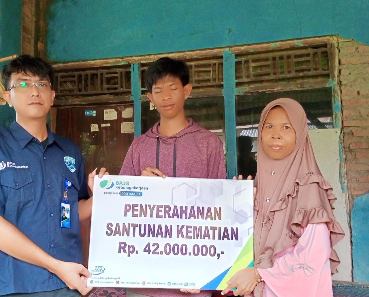 Sekitar pukul 13.00 wib mendatangi rumah almarhum Selamat bin sata yang beralamat di Ko Ciela RT 24 RW 11 Desa Kadawung Pabuaran Subang untuk mewakili dan sekaligus menyerahkan secara simbolis santunan kematian dari BPJS Ketenaga Kerjaan sebesar Rp.42.000.000, ( empat puluh dua juta rupiah )yang di berikan kepada ahli waris almarhum selamat bin Sata, dan menurut informasi yang di terima Tim Koran Perdjoeangan Online Subang (KPonline Subang ) dari ahli waris sudah bisa di pastikan menerima santunan kematian tersebut lewat transper ke rekening Bank.