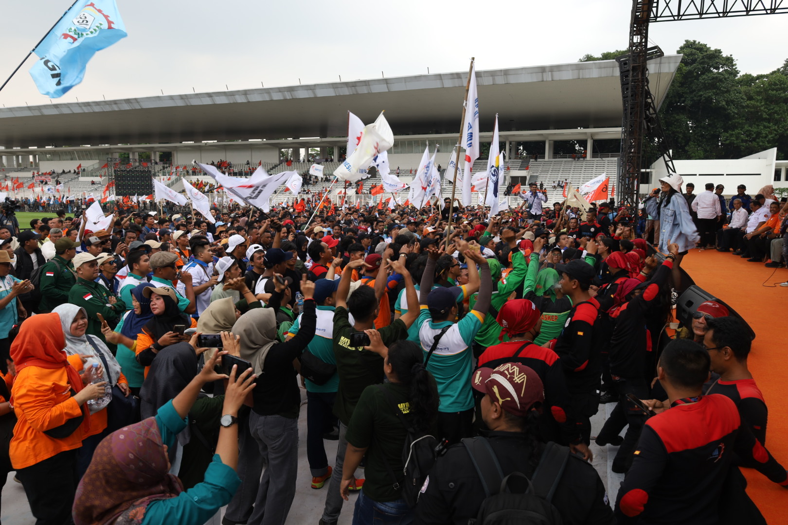Ketua panitia may day fiesta, Kahar S.Cahyono dalam sambutannya menyampaikan bahwa usai aksi di kawasan patung kuda selanjutnya digelar may day fiesta. “Aksi di patung kuda tadi pagi diikuti sekitar 50 ribu buruh dan terimakasih atas energi kawan-kawan untuk hadir dalam acara may day fiesta di Stadion Madya Senayan,” ungkap Kahar dari atas panggung.