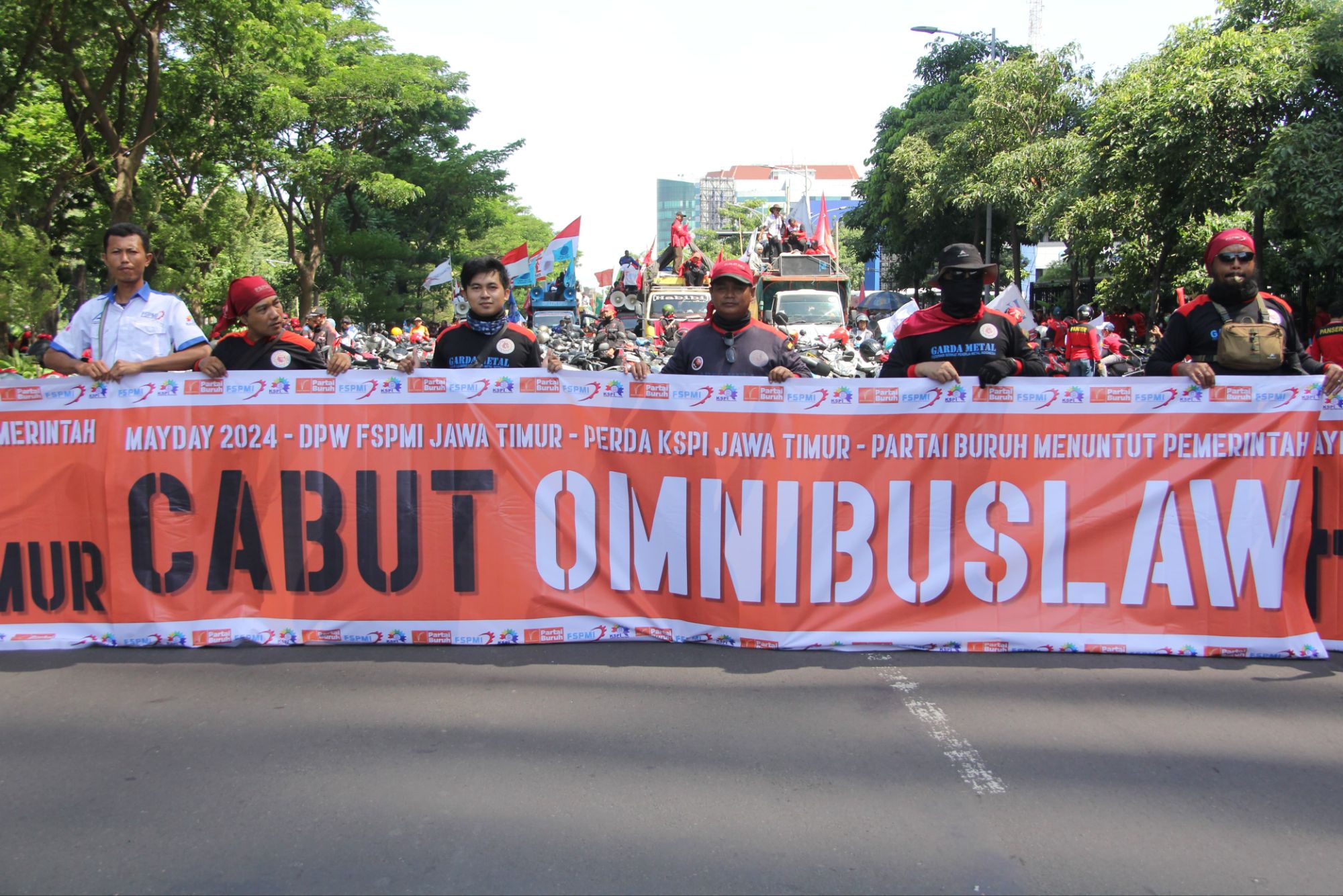 - Cabut Omnibus Law: Massa aksi menuntut pencabutan Undang-Undang Omnibus Law yang dianggap merugikan hak-hak pekerja.