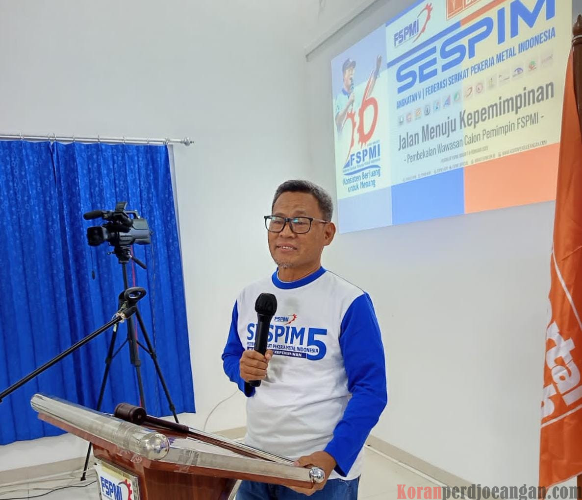 Bogor, KPOnline – Presiden FSPMI, Riden Hatam Aziz juga nampak hadir dalam SESPIM angkatan ke-5 di Pusdiklat FSPMI, Cisarua Bogor, (07/02/2025).