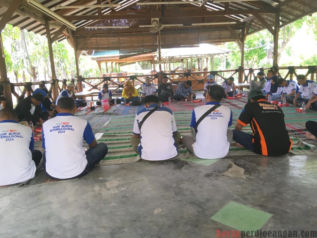 Acara ditutup dengan doa bersama, mengakhiri kegiatan dengan semangat kebersamaan dan harapan besar untuk perjuangan buruh yang lebih baik.