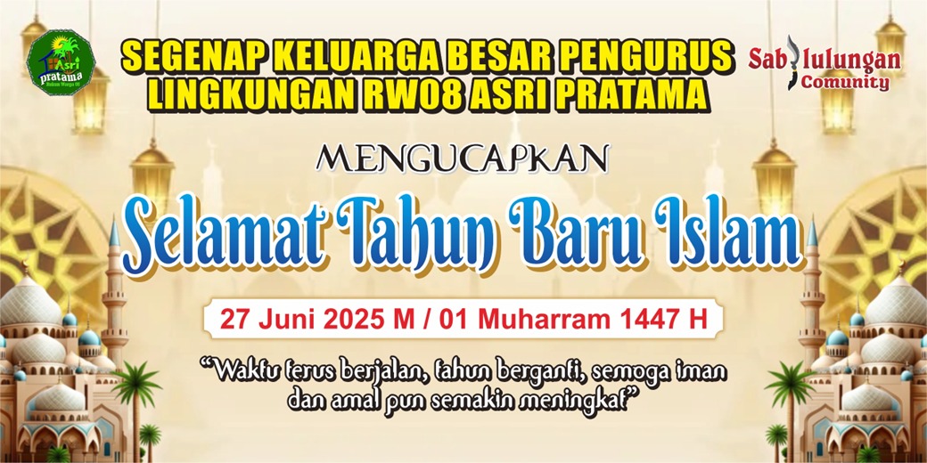 Bekasi, KPonline – Segenap keluarga besar Pengurus Lingkungan RW08 Asri Pratama mengucapkan selamat Tahun Baru Islam 1 Muharram 1447 H yang jatuh pada 27 Juni 2025.