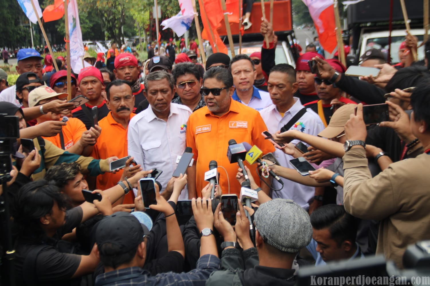 Jakarta, KPonline — Konferensi pers dalam rangkaian Aksi Nasional Buruh digelar di depan Istana Negara, Jakarta, Kamis (8/1/2026). Dalam kesempatan tersebut, Said Iqbal, Presiden Partai Buruh sekaligus Presiden Konfederasi Serikat Pekerja Indonesia (KSPI), menyampaikan perkembangan penting terkait saran atau solusi pengupahan bagi buruh di DKI Jakarta.