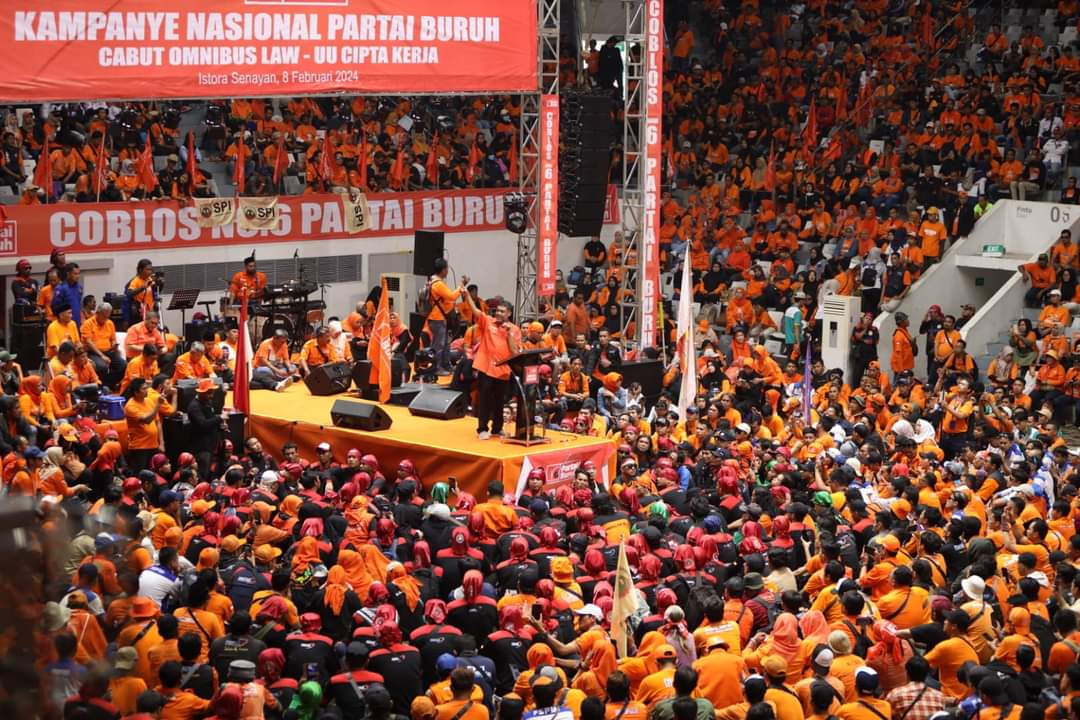 Jakarta, KPOnline – Presiden Partai Buruh, Said Iqbal, menggelar kampanye nasional di Istora Senayan, Jakarta. Kamis, (08/02/2024).