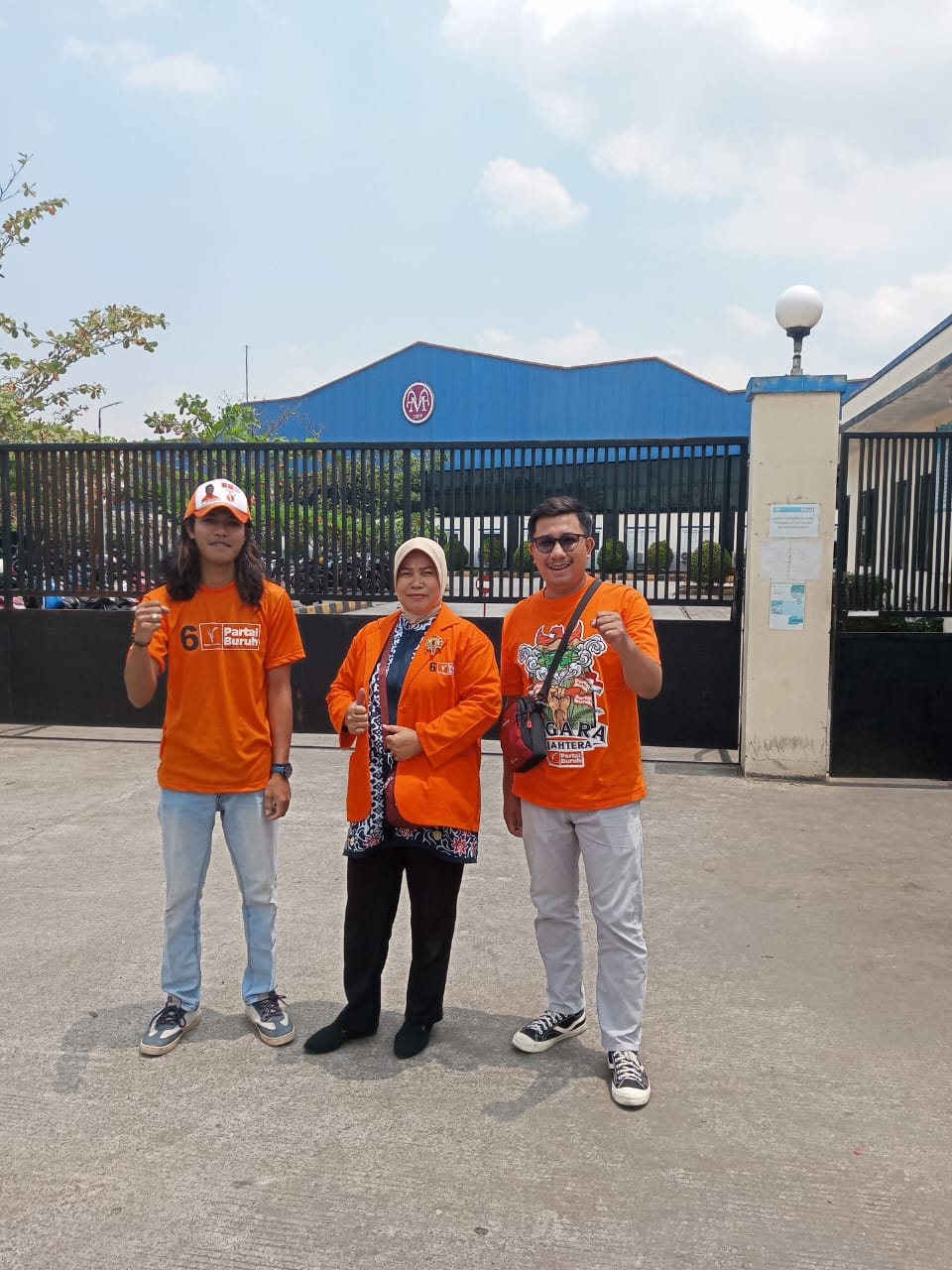 Dengan rasa kekeluargaan dan kehangatan mereka memberikan leaflet dan disambut baik oleh karyawan yang sedang keluar dari pabrik untuk berjalan pulang.