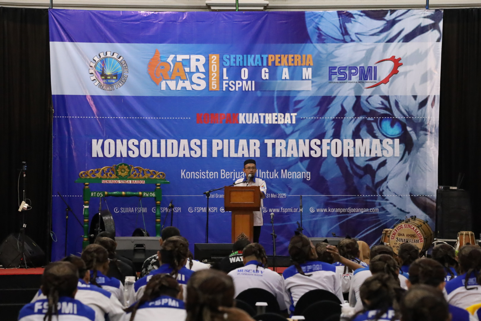 Bandung, KPonline – Sebelum membuka acara Rakernas IV SPL FSPMI, Sabilar Rosyad, SH.,selaku Sekjen DPP FSPMI menyampaikan kepada semua pilar dan kader-kader terbaik dari SPL dan seluruh peserta yang bisa hadir hari ini, Kamis (29/05/2025), di Hotel Grand Pasundan, Bandung, bahwa tradisi yang harus diketahui oleh generasi selanjutnya adalah setiap acara untuk bisa mengundang para pemimpin terdahulu.