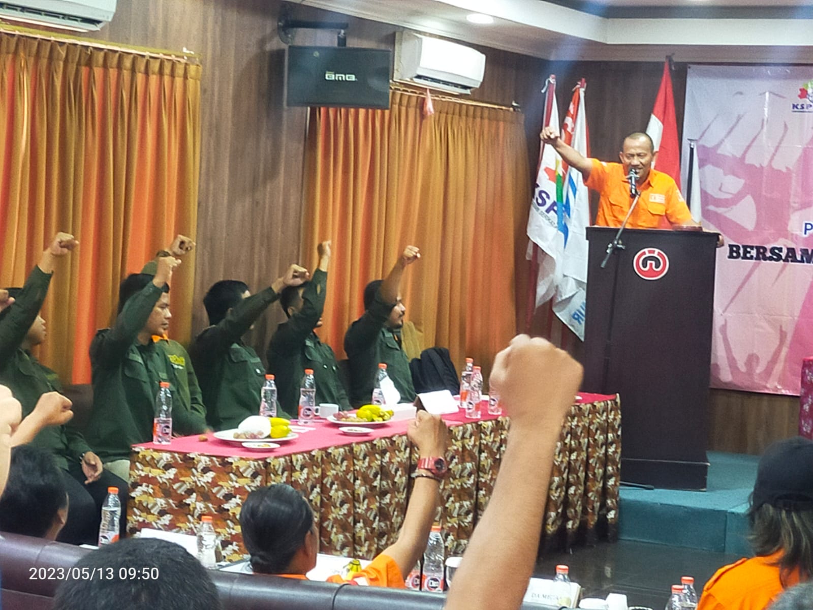 “Saat ini tidak ada pilihan lain bagi buruh kecuali kita memenangkan partai buruh, karena partai buruh menjadi alat perjuangan kita saat ini,” ungkap pria yang terkenal dengan semangat huru-haranya ini. (Yanto)